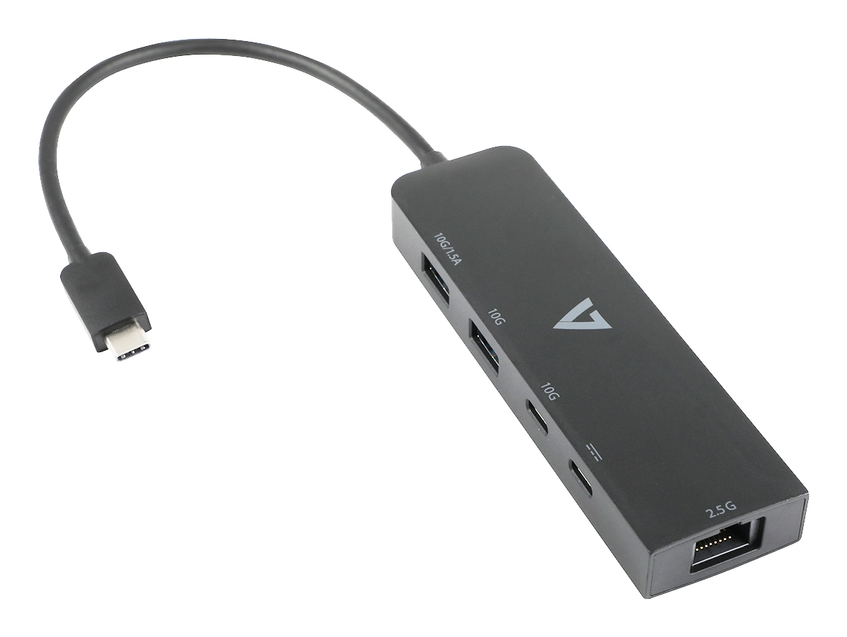 More connectivity options with this USB-C Multi-port Adapter. Connect a computer or mobile device to mulitple USB devices and the Ethernet at the same time from one USB-C connection. Features three USB 3.0 ports and a 2.5 Gigabit Ethernet port with a data transfer speed of up to 5Gbps. Compatible with Windows, Mac OS, Chrome or other USB-C enabled devices. Plug and play connectivity. Built for long term use and high performance using quality materials with ISO certified process and backed by our V7 warranty.