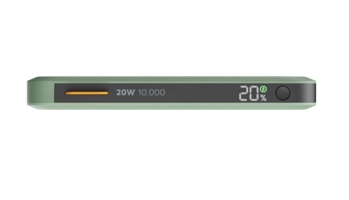 This 10.000mAh Power Bank features two USB-C ports, and one USB-A port. The 20W USB-C PD output is perfect for fast charging all kind of mobile devices. The housing of the Power Bank is mostly made from recycled plastics, in support of a sustainable future.