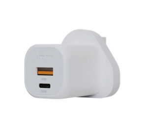 With its compact design and dual port functionality, our 35W GaN² Ultra wall charger is perfect for your travels, office, or home. The inclusion of USB-C and USB-A ports ensures compatibility with a wide range of devices. The USB-C port provides high-speed charging for the latest smartphones, tablets, and even Ultrabooks or other smaller USB-C PD Laptops. You won't need any additional adapters; simply plug in and power up.