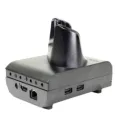 - Two USB ports are located on both sides of cradle. One port provides 1.5A current. The remaining three provide .5A current.