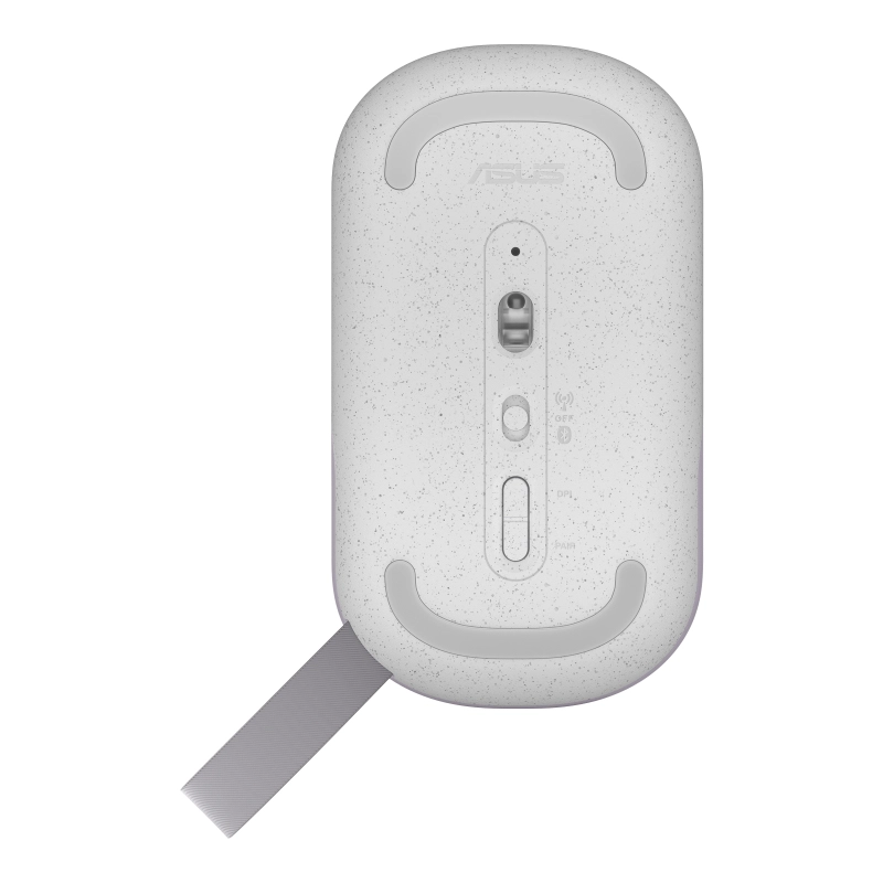 ASUS MD100. Vormfactor: Ambidextrous. Bewegingsdetectietechnologie: Optisch, Aansluiting: RF-draadloos + Bluetooth, Bewegingsresolutie: 1600 DPI, Soort knoppen: Drukknoppen, Scroll type: Wiel. Stroombron: Batterijen. Werkt op elk oppervlak. Kleur van het product: Paars