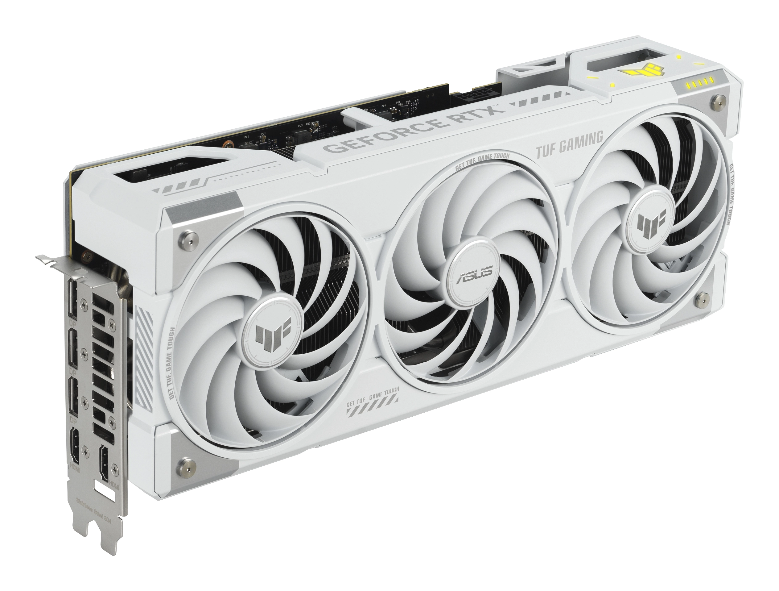 ASUS TUF Gaming TUF-RTX5070TI-O16G-WHITE-GAMING. Grafische processor familie: NVIDIA, Grafische processor: GeForce RTX 5070 Ti. Grafische geheugen: 16 GB, Grafische adapter, soort geheugen: GDDR7, Geheugenbus: 256 Bit. Maximum resolutie: 7680 x 4320 Pixels. DirectX versie: 12 Ultimate, OpenGL versie: 4.6. Soort aansluiting: PCI Express 5.0. Type koeling: Actief, Aantal ventilatoren: 3 ventilator(en), Kleur van de verlichting: Multi