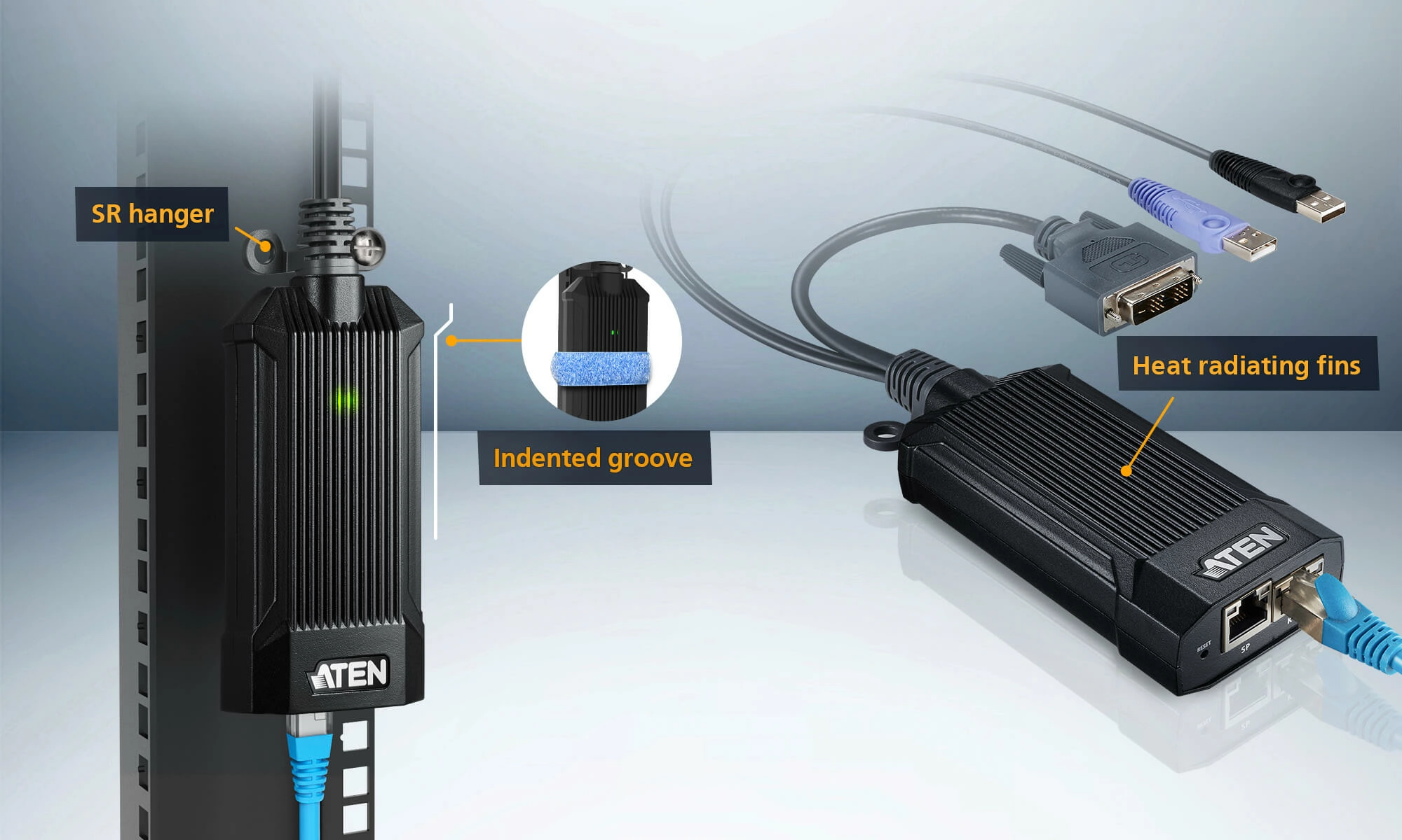 ATEN KG6900T. Bekabelingstechnologie: 10/100/1000Base-T(X). Kleur van het product: Zwart, Grijs, Paars, Materiaal behuizing: Aluminium. Stroombron: DC, Stroomverbruik (typisch): 3, 854 W. Breedte: 58 mm, Diepte: 122 mm, Hoogte: 25, 8 mm