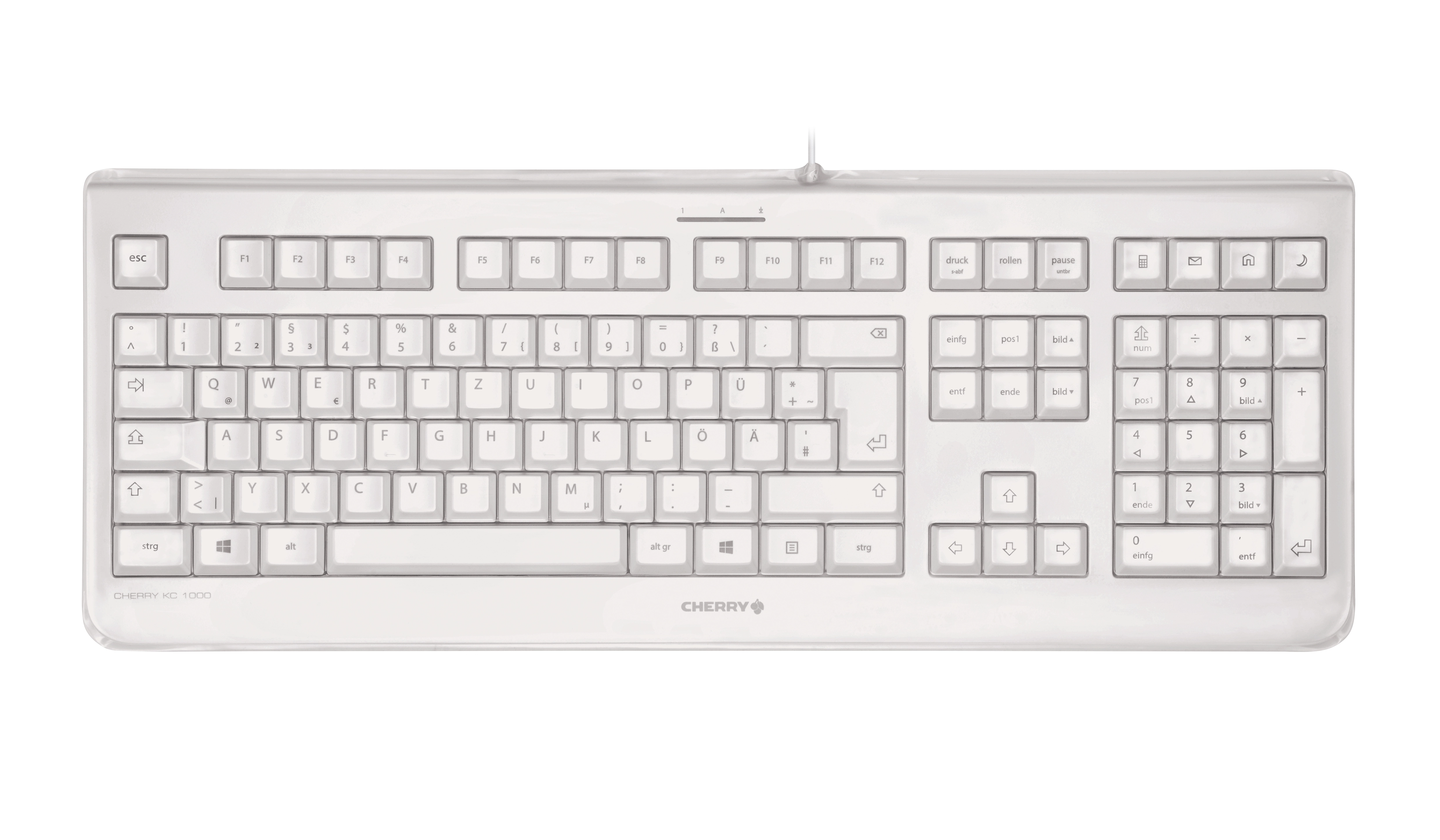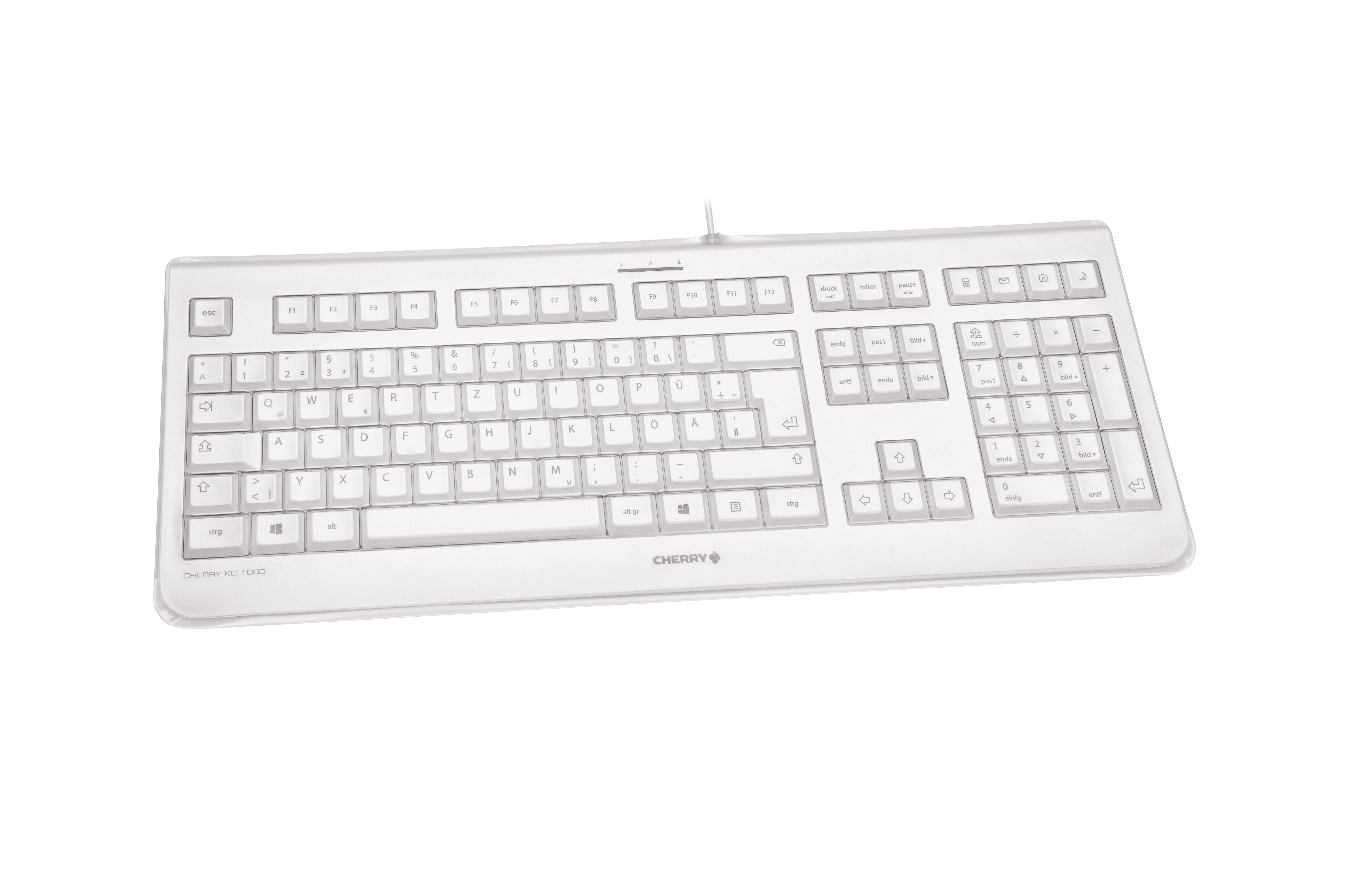 CHERRY KC 1068. Toetsenbord formaat: Volledige grootte (100%). Stijl toetsenbord: Recht. Connectiviteitstechnologie: Bedraad, Aansluiting: USB, Toetsenbord toetsschakelaar: Mechanische keyswitch, Toetsenbordindeling: AZERTY, Aantal toetsen, toetsenbord: 109. Snoerlengte: 1, 8 m. Aanbevolen gebruik: Universeel. Kleur van het product: Grijs