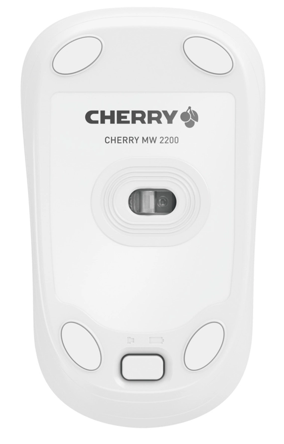 CHERRY MW 2200. Vormfactor: Ambidextrous. Bewegingsdetectietechnologie: Optisch, Aansluiting: RF Draadloos, Bewegingsresolutie: 1300 DPI, Soort knoppen: Drukknoppen, Aantal knoppen: 3, Scroll type: Wiel. Stroombron: Batterijen. Kleur van het product: Wit