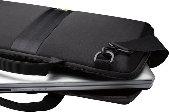 - In het laptopvak met foamvoering worden laptops met een schermgrootte van maximaal 16, 4 inch beschermd