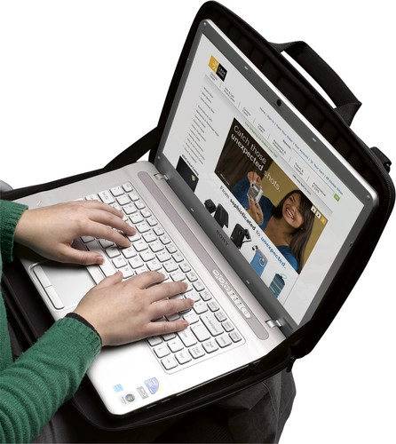 - In de uit EVA gegoten hoes past een laptop met een schermgrootte van maximaal 16 inch