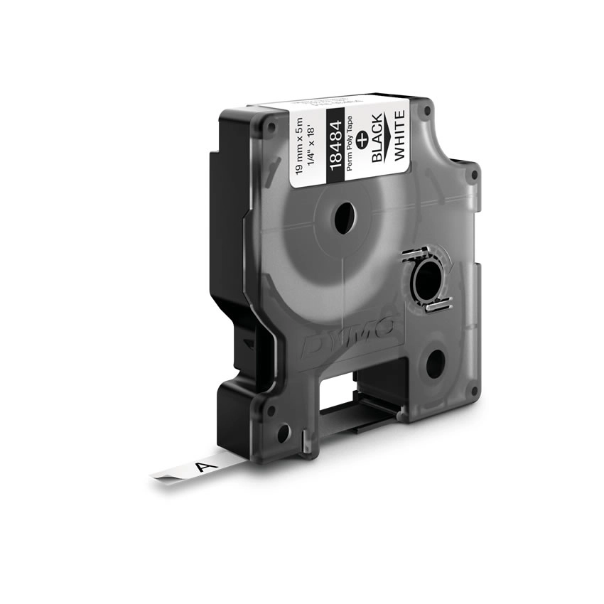 DYMO 18484. Labelkleur: Zwart op wit, Kleur van het product: Multi kleuren, Materiaal: Polyester. Tapebreedte (metrisch): 2, 4 cm, Tape-lengte: 5, 5 m, Type verpakking: Doos