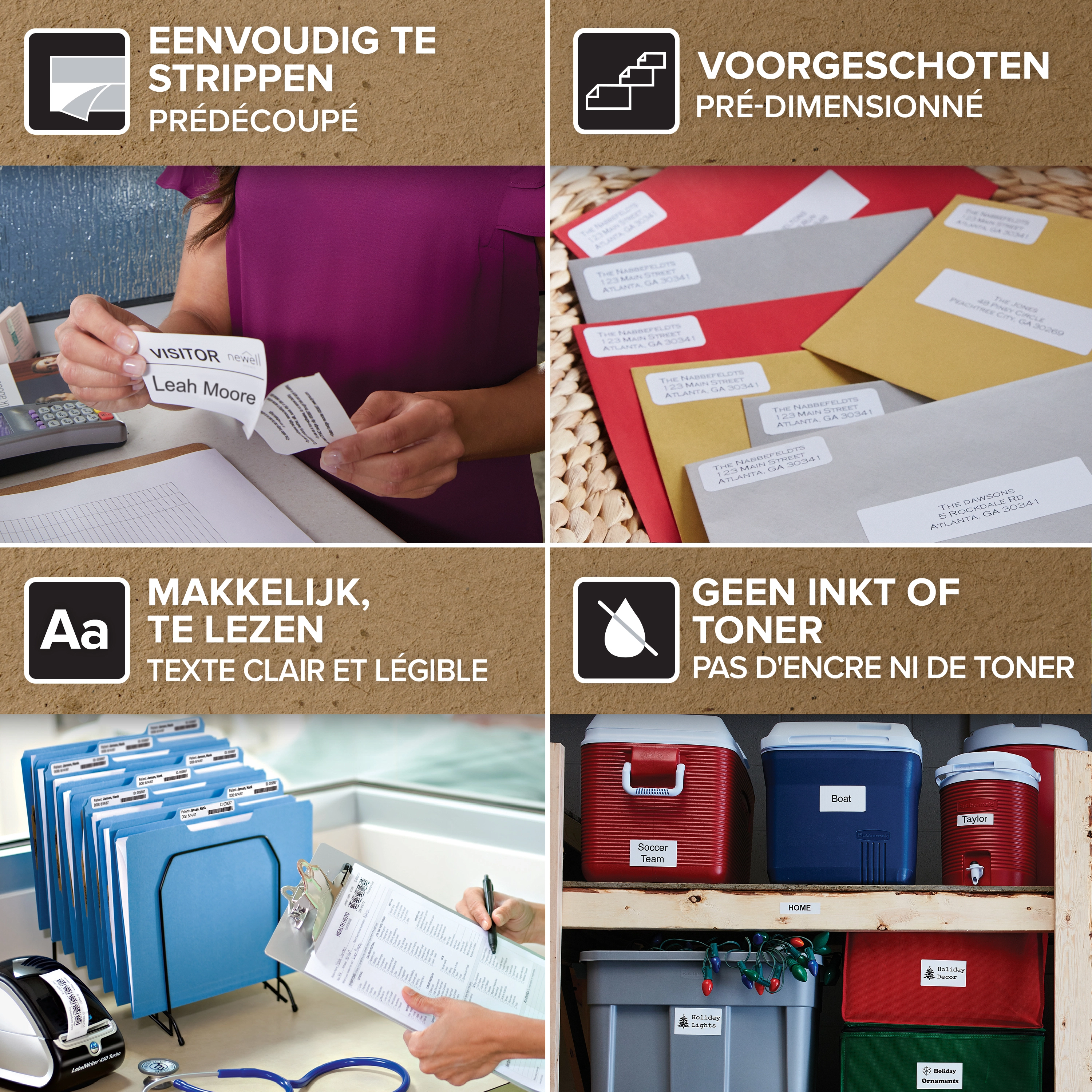 Labels zonder zorgen voor al uw post, pakketten en organisatorische behoeften.