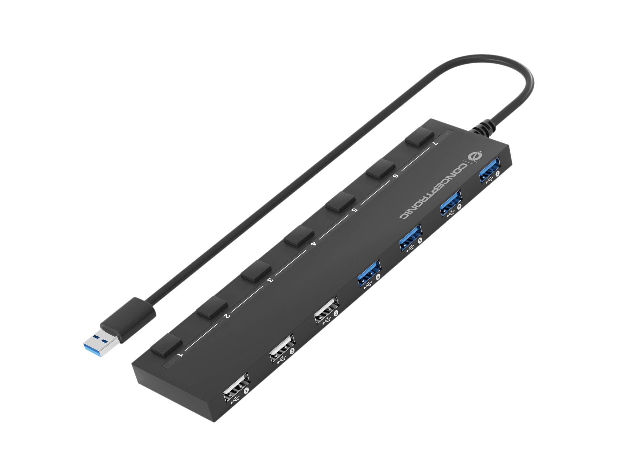 7-Port USB 3.0/2.0 Hub with Power Adapter - 90cm Cable - Individual Power Switch - USB-A 3.0 x 4 - USB-A 2.0 x 3