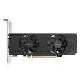 GIGABYTE GeForce RTX 3050 OC Low Profile 6G. Grafische processor familie: NVIDIA, Grafische processor: GeForce RTX 3050, Frequentie van processor: 1477 MHz. Grafische geheugen: 6 GB, Grafische adapter, soort geheugen: GDDR6, Geheugenbus: 96 Bit, Kloksnelheid geheugen: 14000 MHz. Maximum resolutie: 7680 x 4320 Pixels. DirectX versie: 12 Ultimate, OpenGL versie: 4.6. Soort aansluiting: PCI Express 4.0. Type koeling: Actief, Aantal ventilatoren: 2 ventilator(en)
