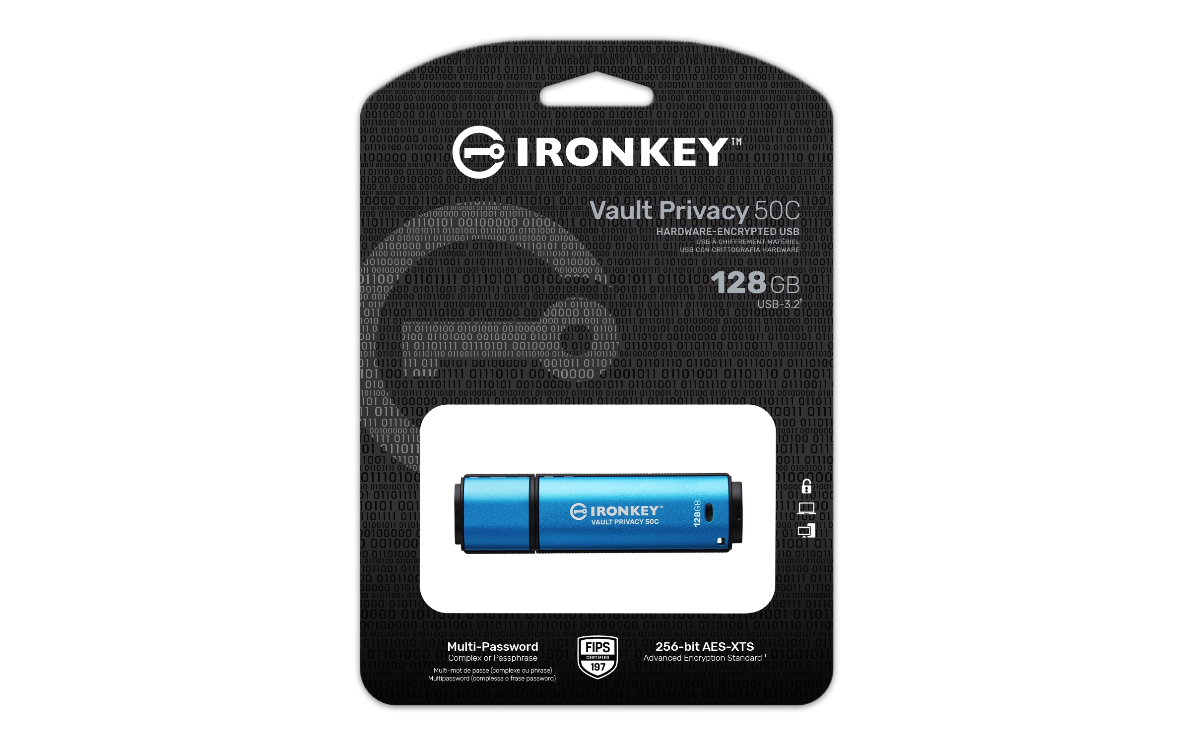 128GB USB-C IronKey Vault Privacy 50C AES-256 Encrypted FIPS 197