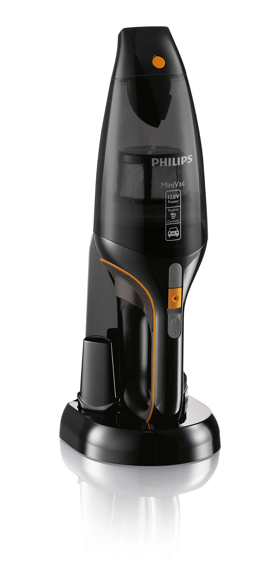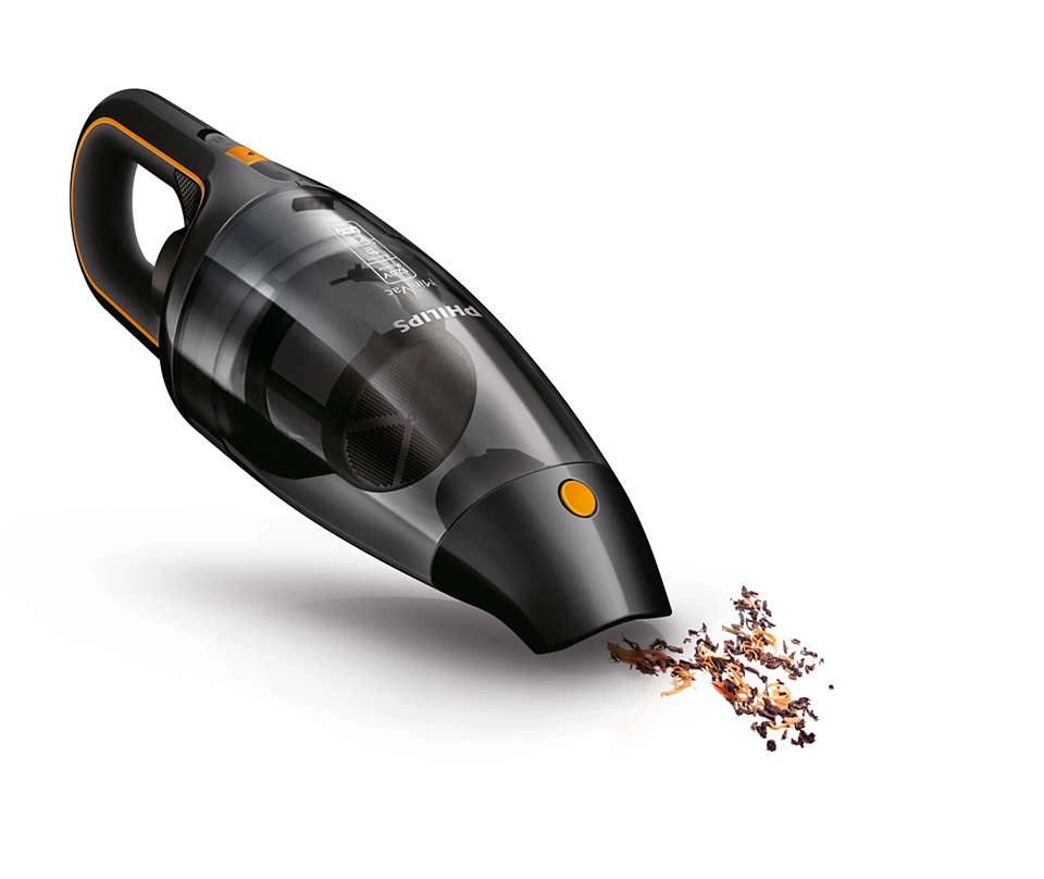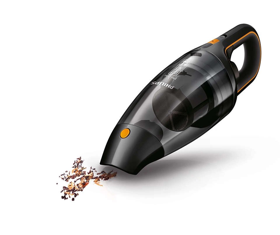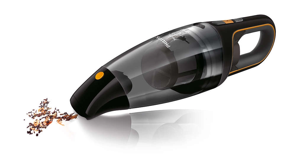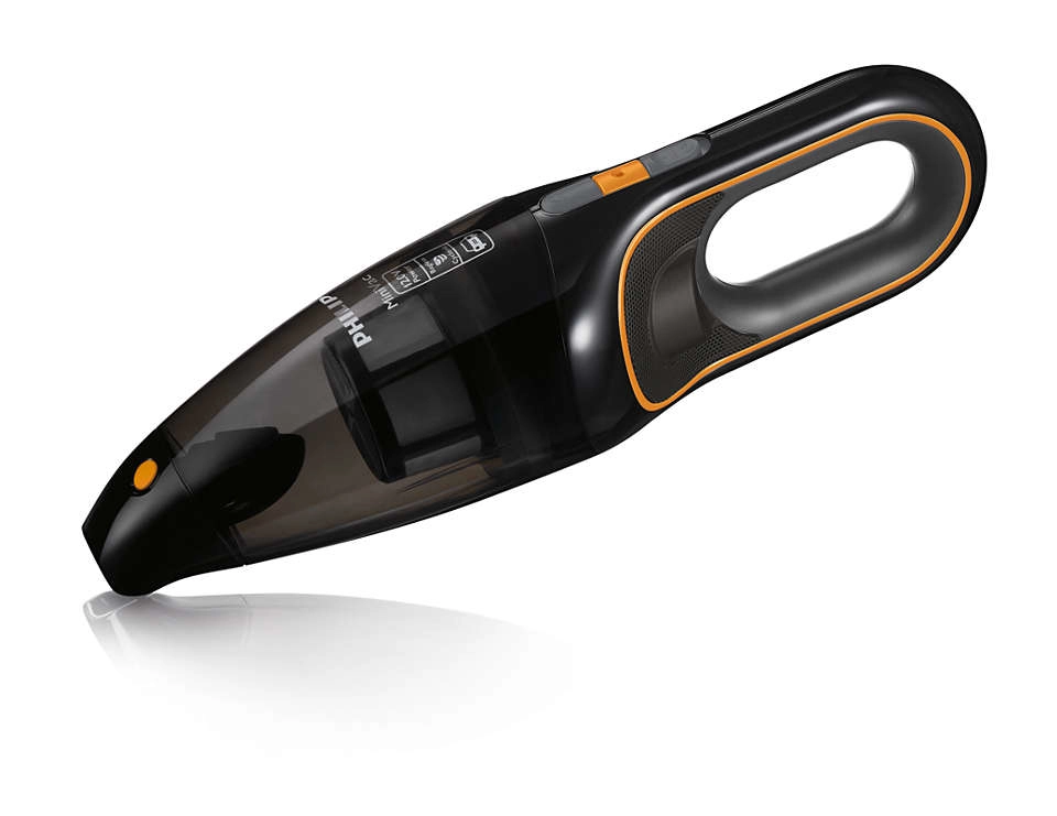 Philips FC6149/02. Soort reiniging: Droog, Vuilafscheidingsmethode: Cyclonisch, Luchtstroom: 950 l/min. Stofzuigercontainer type: Zakloos, Kleur van het product: Zwart, Oranje, Droog vuil: 0, 8 l. Stroombron: Batterij/Accu, Maximaal ingangsvermogen: 100 W, Looptijd: 9 min