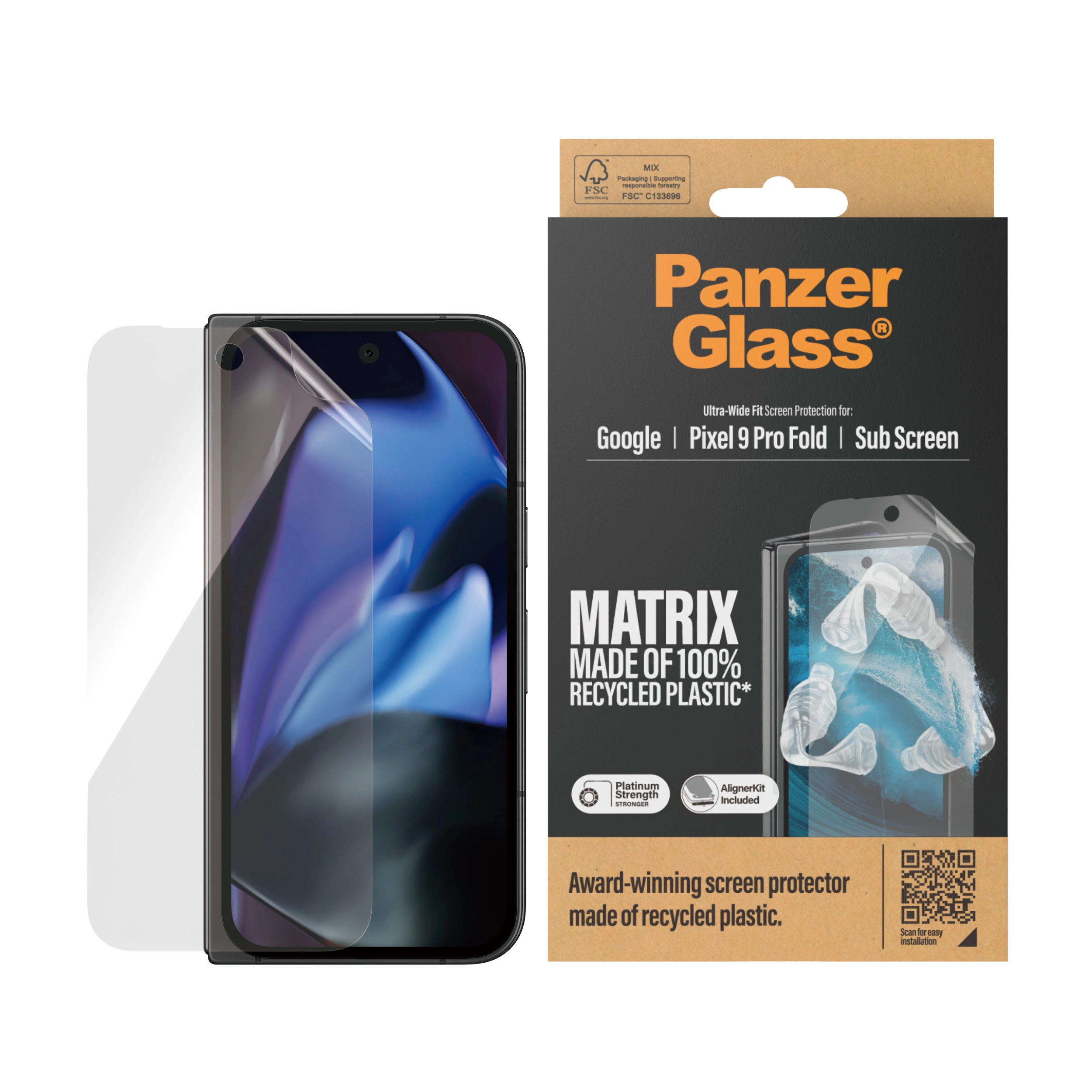 PanzerGlass 4791. Merkcompatibiliteit: Google, Compatibiliteit: Google - Pixel 9 Pro Fold. Droge toepassing. Veiligheidsfunties: Krasbestendig, Schokbestendig. Materiaal: Polyethyleentereftalaat (PET), Silicone, Kleur van het product: Transparant. Aantal per verpakking: 1 stuk(s)