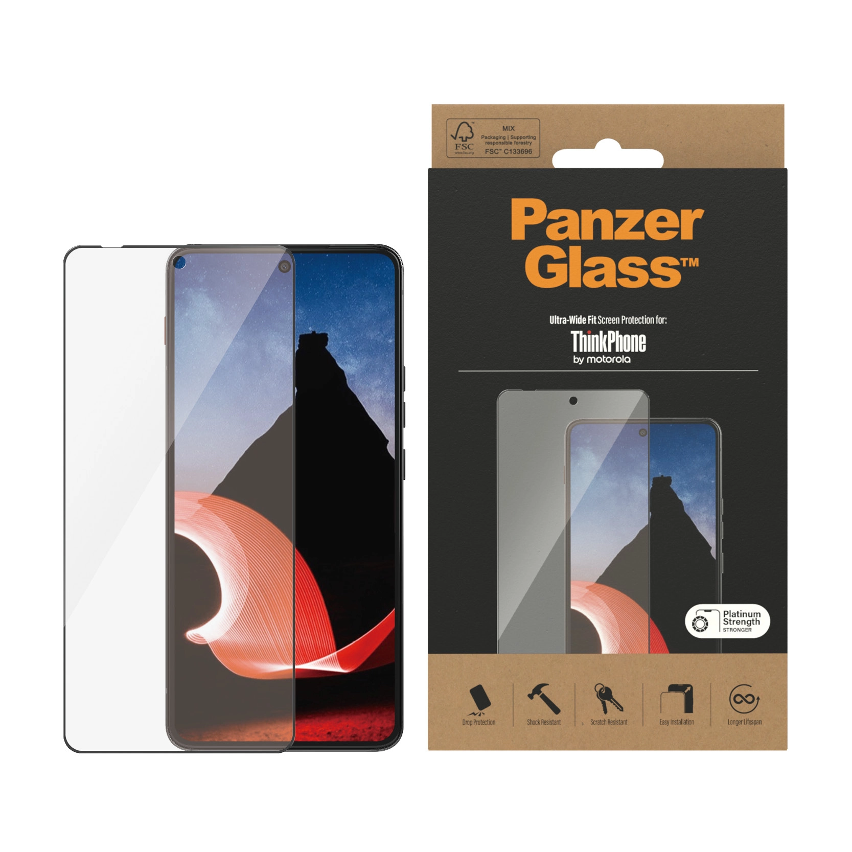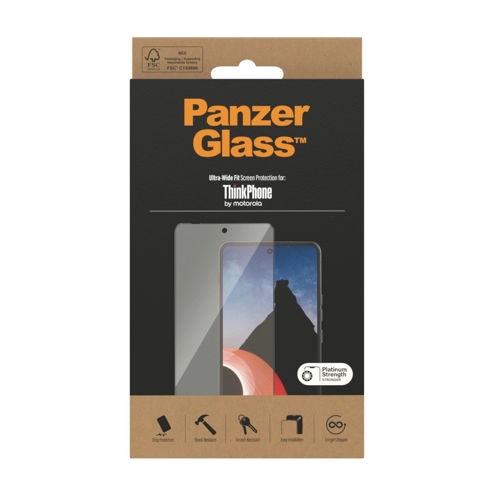 PanzerGlass PG Scrn Motorola Thinkphone UWF. Merkcompatibiliteit: Motorola, Compatibiliteit: Motorola - ThinkPhone 5G. Droge toepassing. Veiligheidsfunties: Krasbestendig, Schokbestendig. Materiaal: Gehard glas, Polyethyleentereftalaat (PET), Silicone, Kleur van het product: Transparant. Aantal per verpakking: 1 stuk(s)