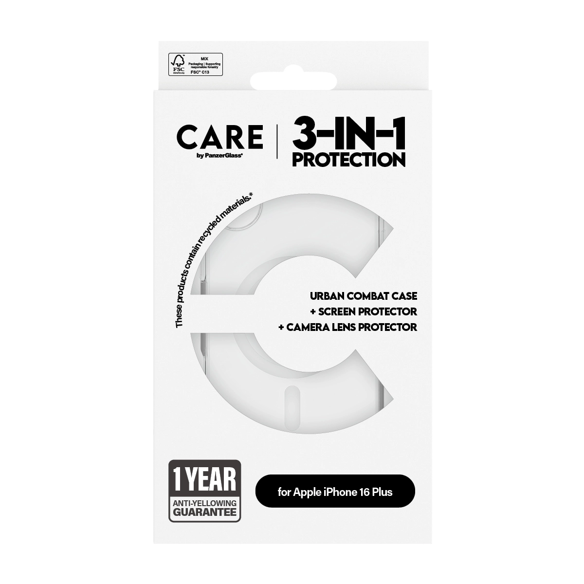 PanzerGlass B1339+2863+1285. Merkcompatibiliteit: Apple, Compatibiliteit: Apple - iPhone 16 Plus. Droge toepassing. Veiligheidsfunties: Krasbestendig, Schokbestendig. Materiaal: Gehard glas, Polyethyleentereftalaat (PET), Silicone, Kleur van het product: Transparant. Aantal per verpakking: 1 stuk(s)
