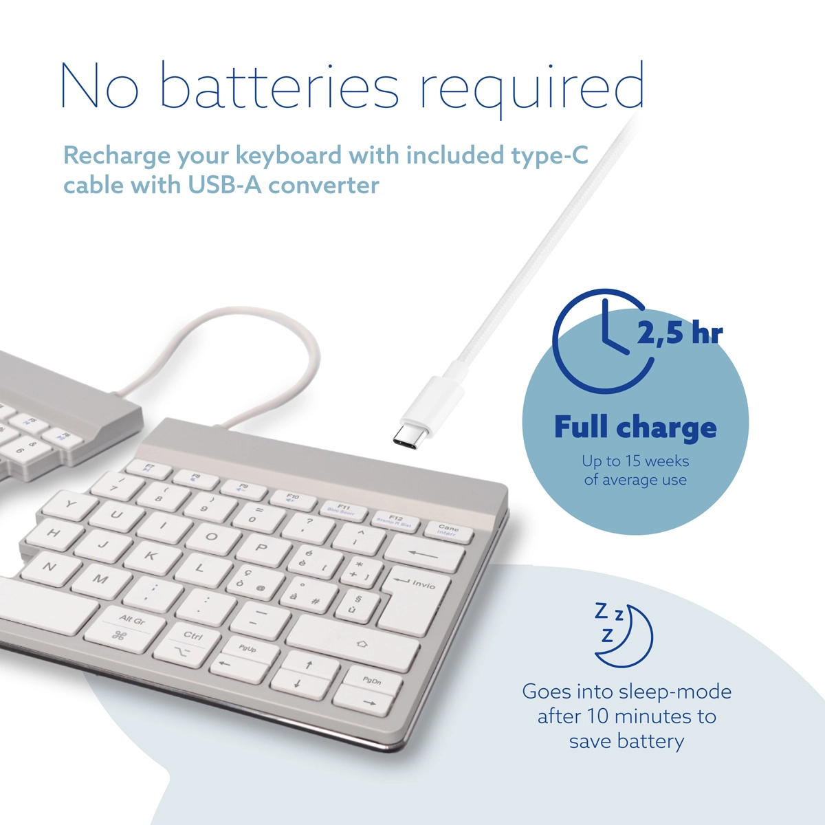 Ergonomic keyboard R-Go Split Break with break software split keyboard QWERTY (IT) Bluetooth white
