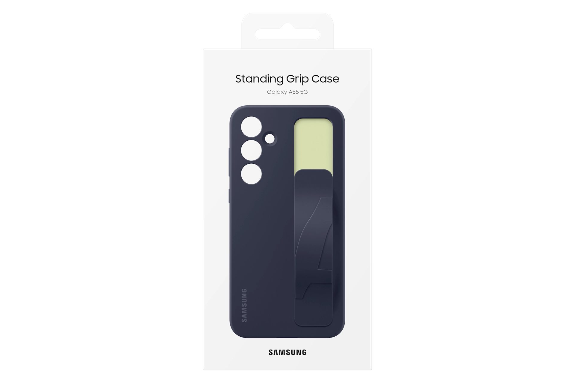 De Standing Grip Case is voorzien van een siliconen bandje dat eenvoudig naar beneden getrokken kan worden om je telefoon stevig vast te houden of neer te zetten. Verkrijgbaar in de kleur Blue Black met een binnenkant in de kleur Green of in de kleur Gray met een binnenkant in de kleur Pink.