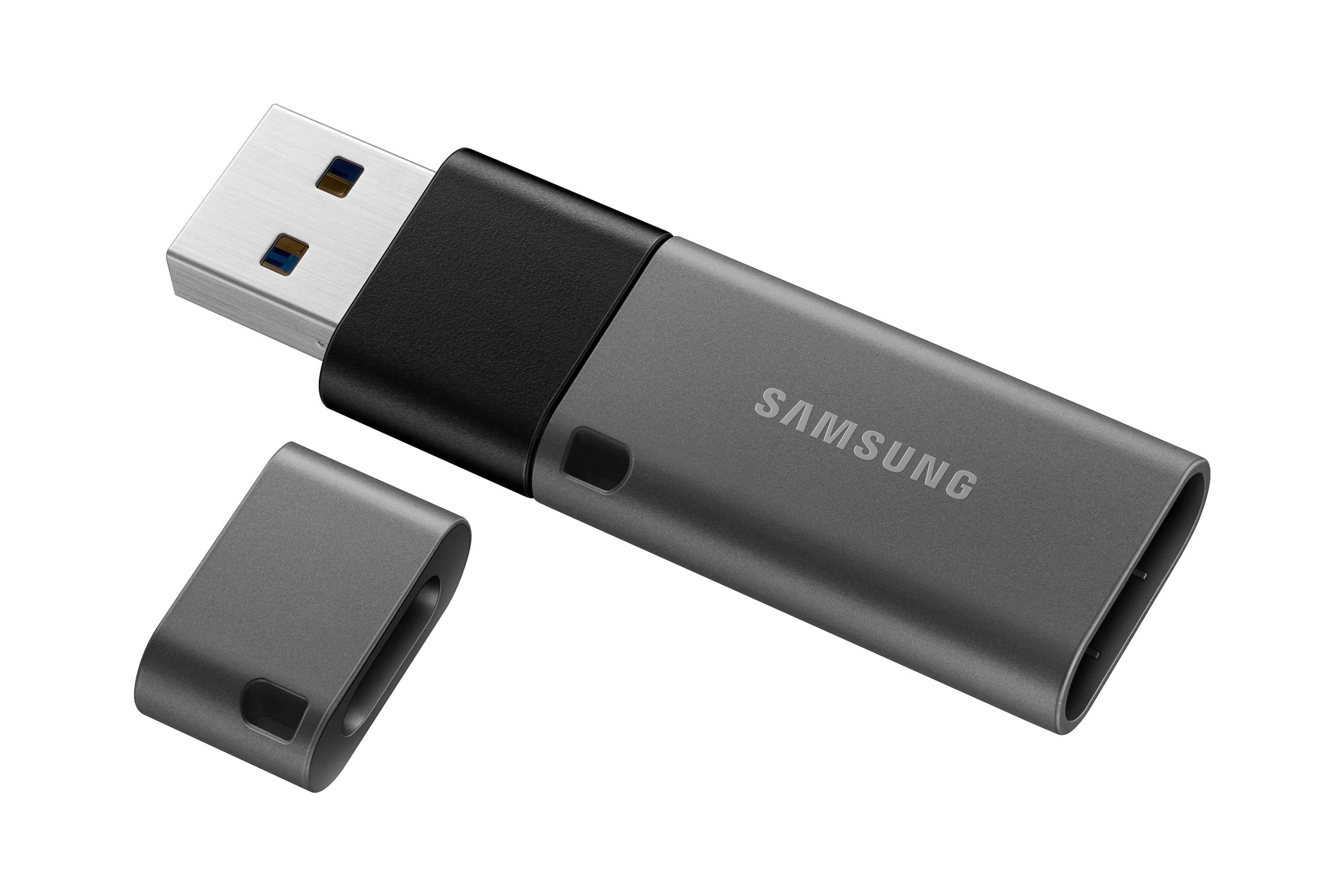Samsung Duo Plus. Capaciteit: 256 GB, Aansluiting: USB Type-C, USB-versie: 3.2 Gen 1 (3.1 Gen 1), Leessnelheid: 300 MB/s. Vormfactor: Dop. Gewicht: 7, 7 g. Kleur van het product: Zwart, Grijs
