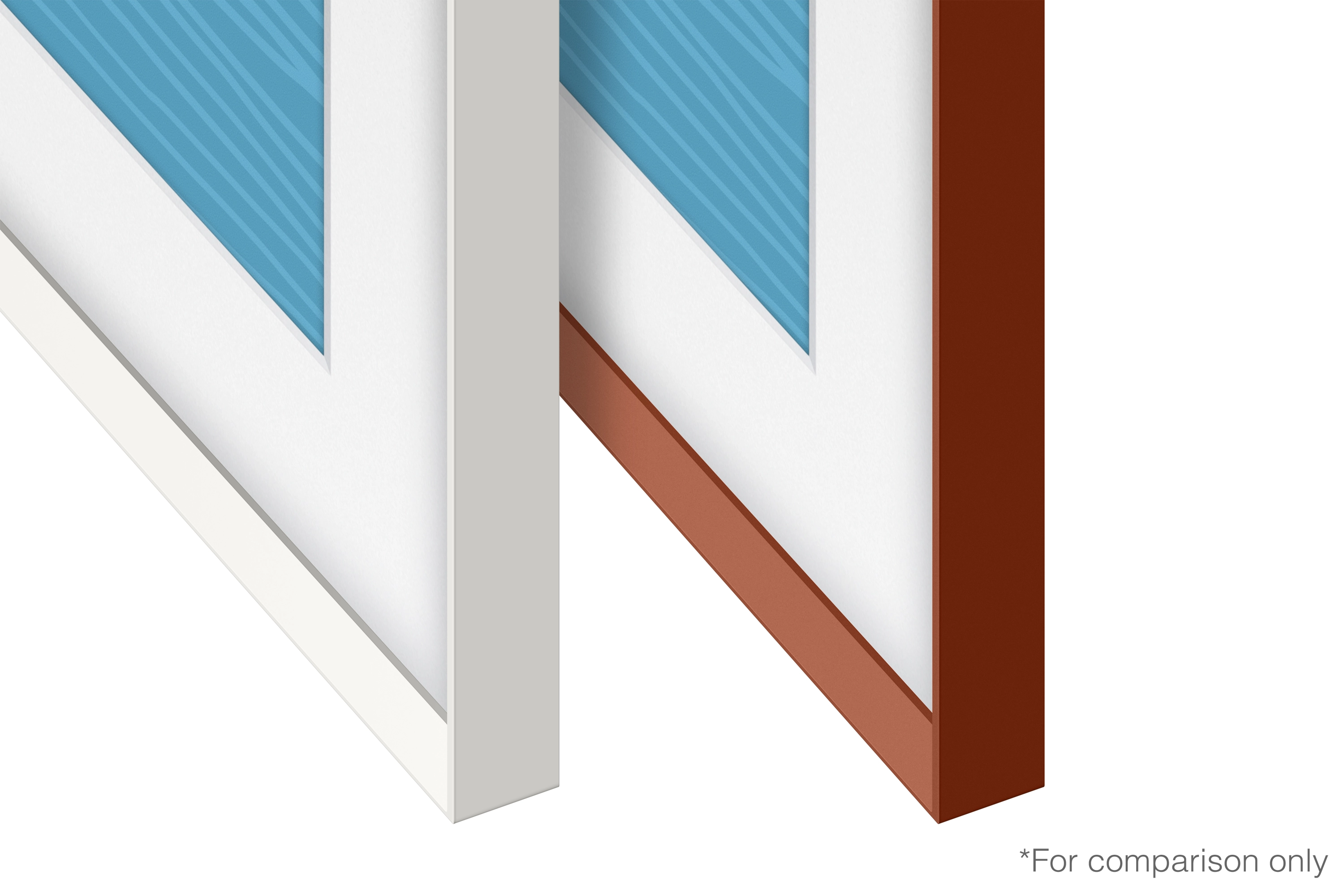 Personaliseer de lijst van The Frame met één van de vier kleuren: wit, teakhout look, walnoothout look of terracotta. Of je nu een ruimte inricht gebaseerd op de locatie, een uniek kleurpatroon of zelfs voor een speciale gelegenheid, de kleuren bieden een stijlvol contrast of een subtiele, verfijnde aanvulling.