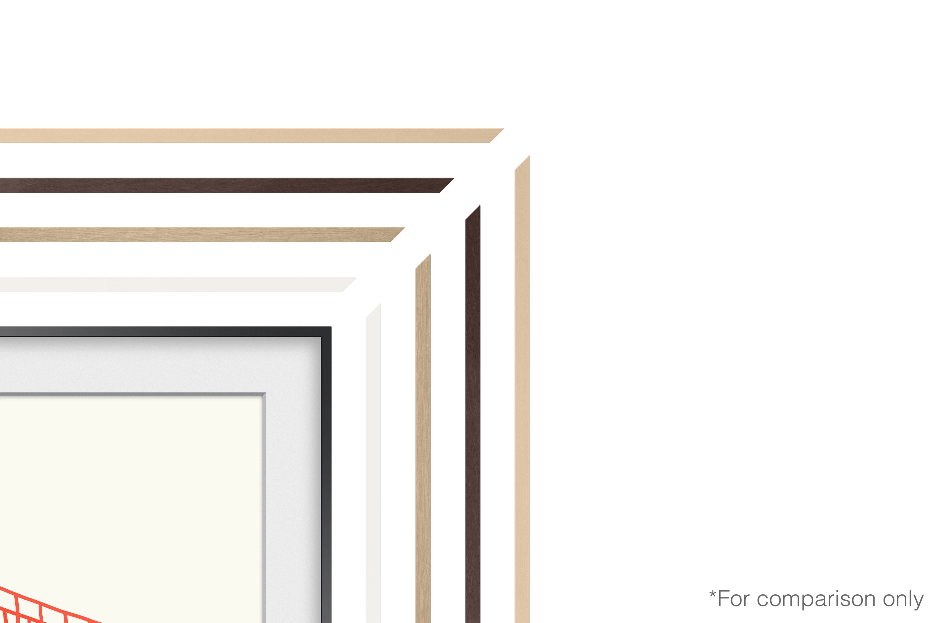 De nieuwe Frame is bijna de helft dunner dan zijn voorganger en daarom zijn er nieuwe lijsten beschikbaar. Dit jaar heb je meer keuze in de kleur en het ontwerp van jouw lijst.