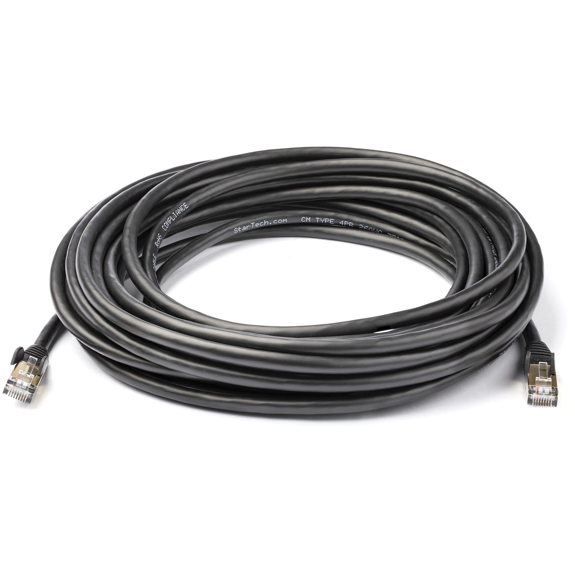 Deze Cat6a Ethernet kabel voldoet aan specificaties voor categorie 6a kabels. Hij zorgt voor betrouwbare 10 Gb verbindingen tussen uw netwerkapparaten. Scherm uw netwerk af Elke CAT6a kabel is getest tot een frequentie van 500 MHz en is meer dan geschikt voor 10GBase-T Ethernet netwerken. Gemaakt van 100% koper en met een folie afgeschermde twisted-pair draad is deze kabel bestemd voor hoogwaardige prestaties. De kabel is ontworpen om de datasignalen zonder ruis en interferentie door uw netwerk te laten stromen. Hij is perfect voor omgevingen die gevoelig zijn voor veel elektromagnetische interferentie (EMI/FRI). Bescherm uw apparatuur Deze CAT6a netwerkkabel is gemaakt van 100% koper en is getest en voldoet aan ANSI/TIA 568 C.2 categorie 6a eisen. Wij gebruiken geen Copper-Clad Aluminium (CCA) draad die gevoelig zijn voor problemen zoals zwakke voeding, warmteontwikkeling, beschadiging van de apparatuur en mogelijk zelfs brand. De 50 micron gouden connectors bieden optimaal geleidingsvermogen en elimineren signaalverlies vanwege oxidatie of corrosie. Installeer eenvoudig uw netwerkkabels Voor probleemloze kabeltrajecten is deze duurzame kabel voorzien van snagless connectors die de RJ45 clips tijdens de installatie beschermen, waardoor ze minder gevoelig zijn voor vasthaken of breken. De CAT6a Ethernet kabel is ook voorzien van gegoten contacten die trekontlasting bieden en zo voorkomen dat de RJ45 connectors in een scherpe hoek worden gebogen. Zo wordt het risico van kabelbeschadiging verminderd, waardoor een mogelijke aantasting van de netwerkconnectiviteit en -prestatie wordt voorkomen. De 6ASPAT10MBK wordt gedekt door de levenslange garantie van StarTech. com, voor gegarandeerde betrouwbaarheid.