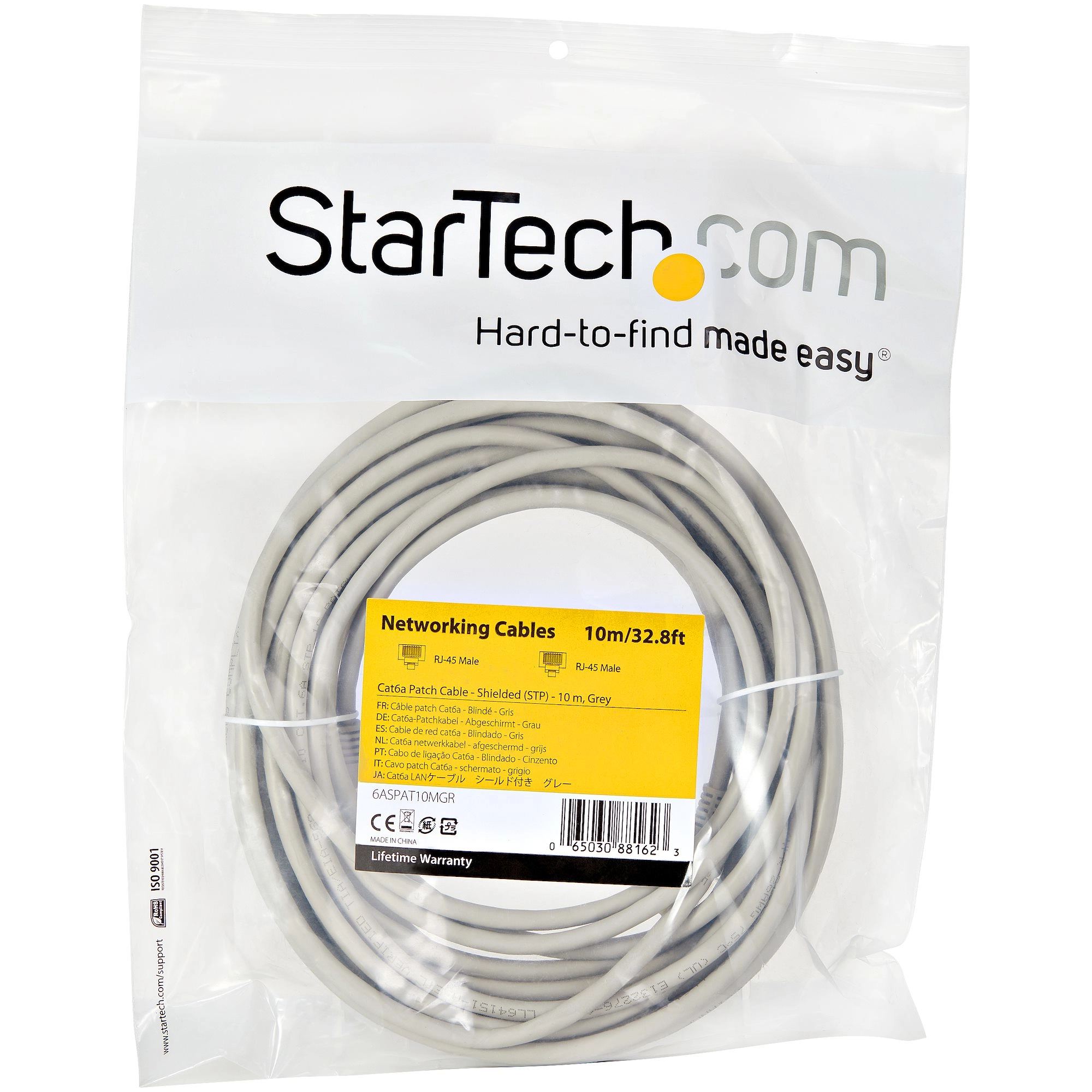 Deze Cat6a Ethernet kabel voldoet aan specificaties voor categorie 6a kabels. Hij zorgt voor betrouwbare 10 Gb verbindingen tussen uw netwerkapparaten. Scherm uw netwerk af Elke CAT6a kabel is getest tot een frequentie van 500 MHz en is meer dan geschikt voor 10GBase-T Ethernet netwerken. Gemaakt van 100% koper en met een folie afgeschermde twisted-pair draad is deze kabel bestemd voor hoogwaardige prestaties. De kabel is ontworpen om de datasignalen zonder ruis en interferentie door uw netwerk te laten stromen. Hij is perfect voor omgevingen die gevoelig zijn voor veel elektromagnetische interferentie (EMI/RFI). Bescherm uw apparatuur Deze CAT6a netwerkkabel is gemaakt van 100% koper en is getest en voldoet aan ANSI/TIA 568 C.2 categorie 6a eisen. Wij gebruiken geen Copper-Clad Aluminium (CCA) draad die gevoelig zijn voor problemen zoals zwakke voeding, warmteontwikkeling, beschadiging van de apparatuur en mogelijk zelfs brand. De 50 micron gouden connectors bieden optimaal geleidingsvermogen en elimineren signaalverlies vanwege oxidatie of corrosie. Installeer eenvoudig uw netwerkkabels Voor probleemloze kabeltrajecten is deze duurzame kabel voorzien van snagless connectors die de RJ45 clips tijdens de installatie beschermen, waardoor ze minder gevoelig zijn voor vasthaken of breken. De CAT6a Ethernet kabel is ook voorzien van gegoten contacten die trekontlasting bieden en zo voorkomen dat de RJ45 connectors in een scherpe hoek worden gebogen. Zo wordt het risico van kabelbeschadiging verminderd, waardoor een mogelijke aantasting van de netwerkconnectiviteit en -prestatie wordt voorkomen. De 6ASPAT10MGR wordt gedekt door de levenslange garantie van StarTech. com, voor gegarandeerde betrouwbaarheid.