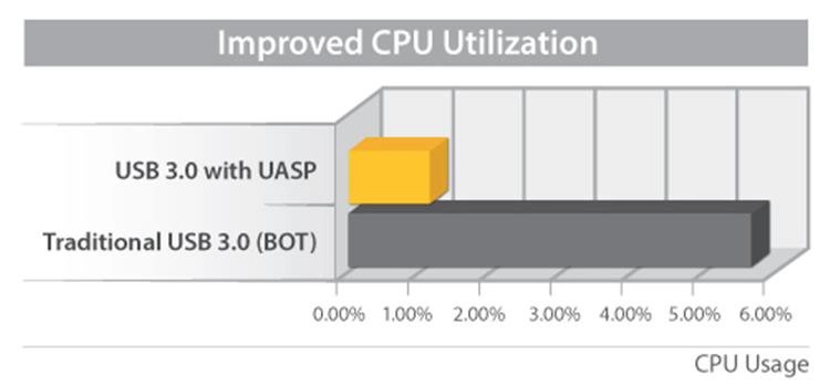 UASP wordt ondersteund in Windows 8, Mac OSX (10.8 of hoger) en Linux. Uit tests blijkt dat UASP 70% sneller leest en 40% sneller schrijft dan traditionele USB 3.0 bij volle capaciteit.