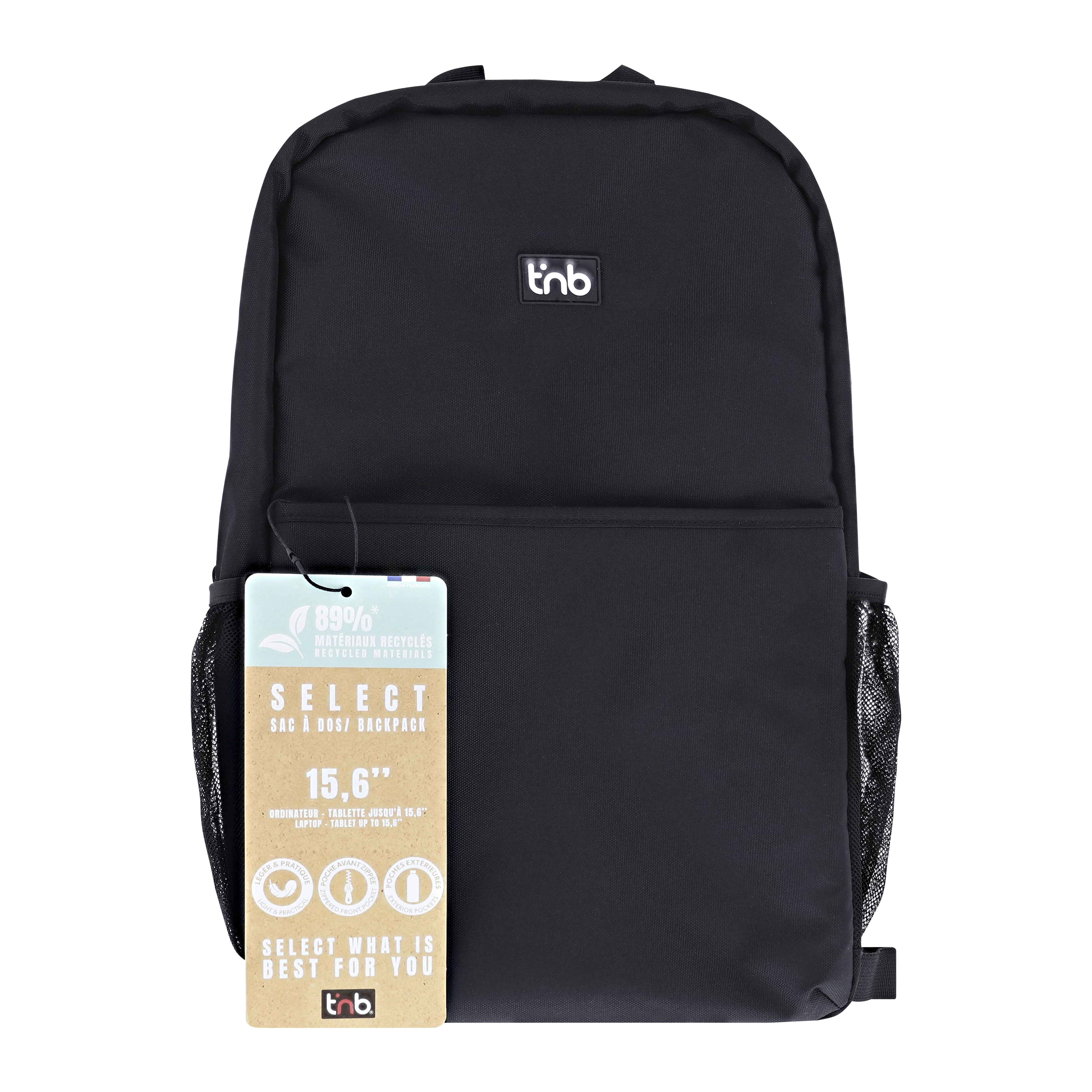Discover the laptop backpack from the Select range. Developed to meet a need with a good quality/price ratio, it will surprise you and accompany you on a daily basis. The main compartment has a pocket dedicated to your computer/tablet and protects your device against shocks. Its different compartments accommodate your accessories and allow you to organize them. The zipped front pocket allows you to store all your personal belongings securely. Its reversed zippers add elegance and discretion. The side pocket allows you to carry a bottle of water easily. This backpack is easy to carry: you have a trolley strap as well as comfortable shoulder straps. Its lightness and dimensions allow you to always have it close to you. Concerned about the environment, we have developed this backpack in 89% RPET and waterproof material. Compatible up to 15.6''.