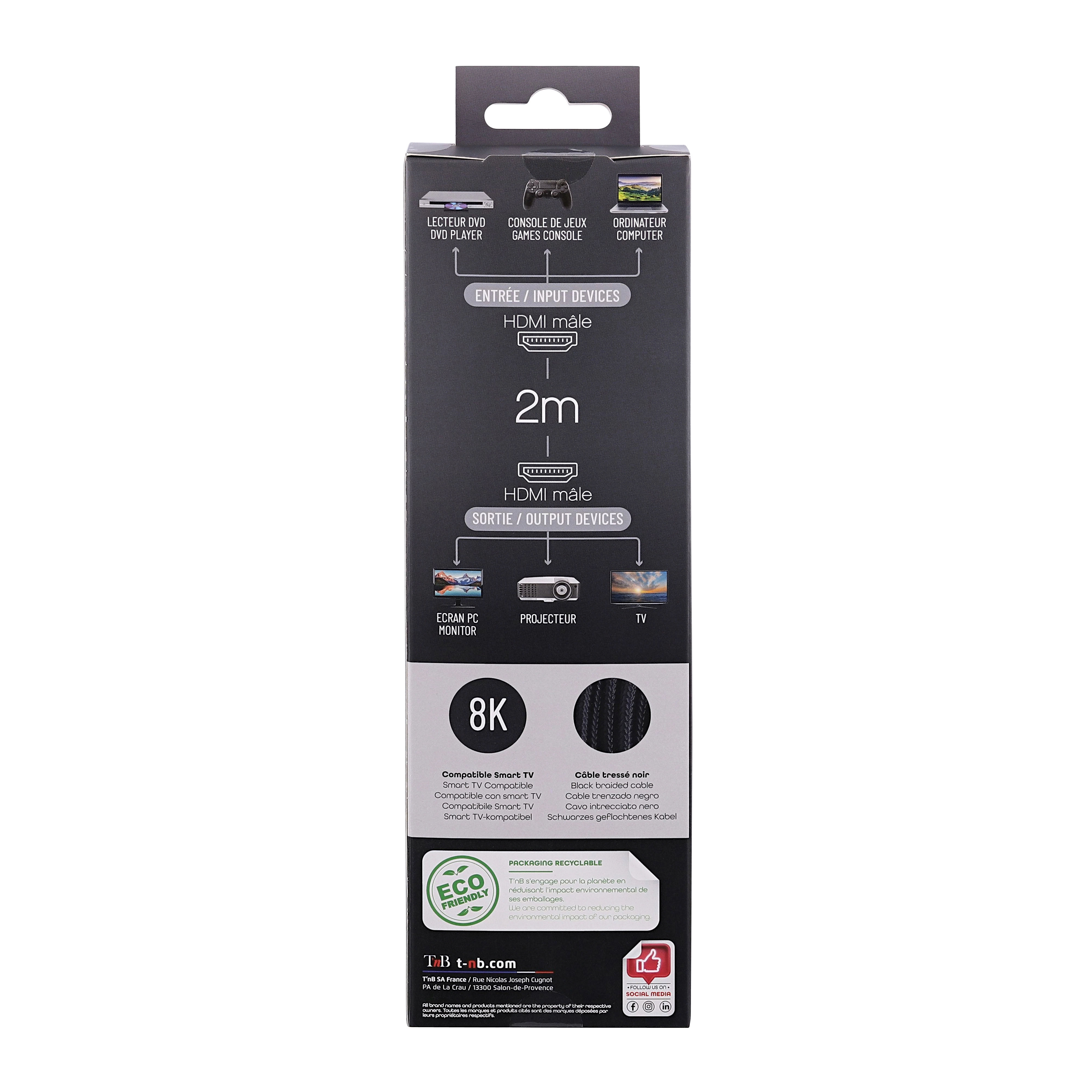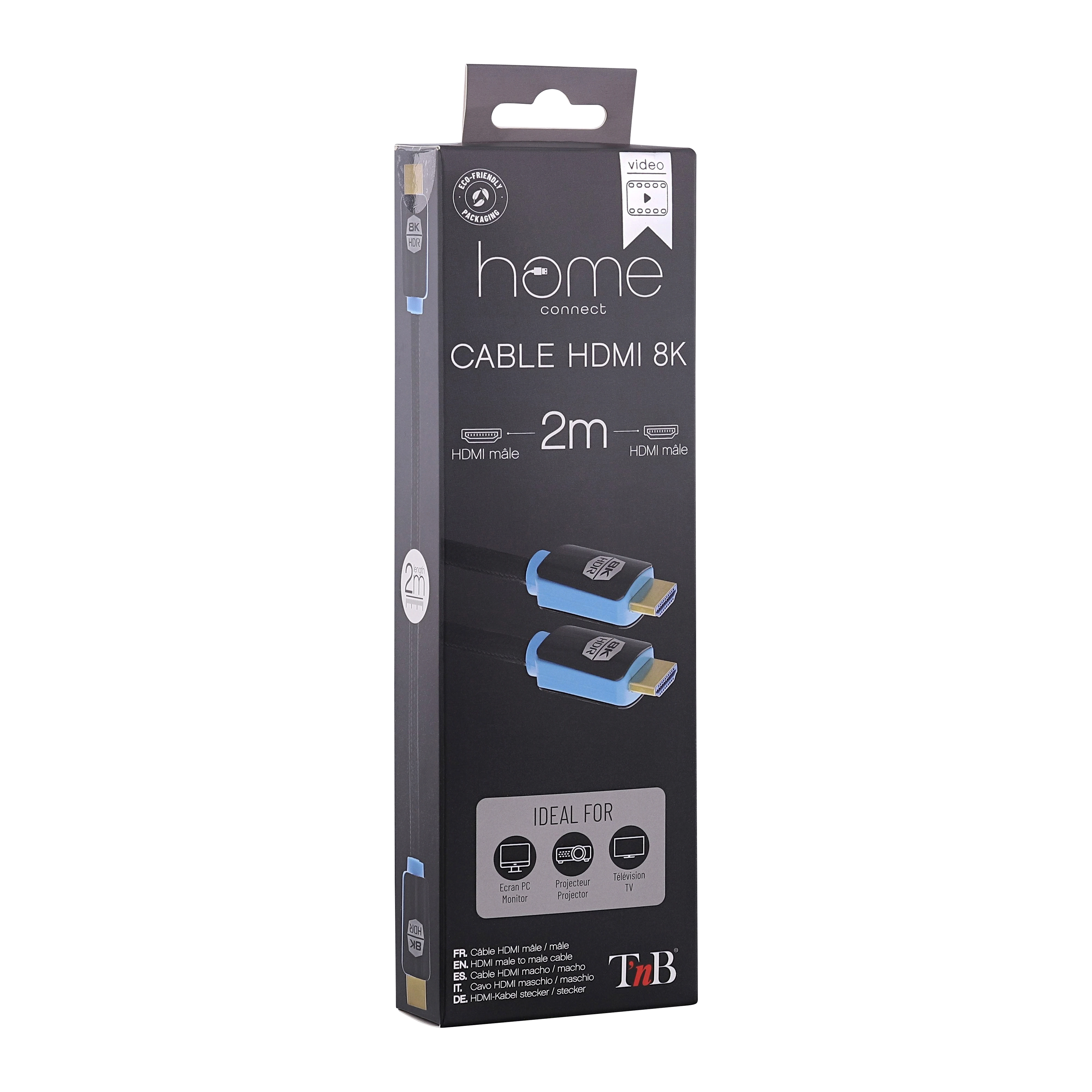 HDMI male/male cable 19+1 pins "HD Ready" HDMI version 2.1 8K HDMI "High-Definition Multimedia Interface" to transmit high definition video and high resolution audio from a source (Blu-ray player, game console, etc. ) to your TV and Hi Fi equipment (HD TV, for example). Gold connectors Supports 3D, 8K@60GHz, 48Gbps, 4k@120Hz