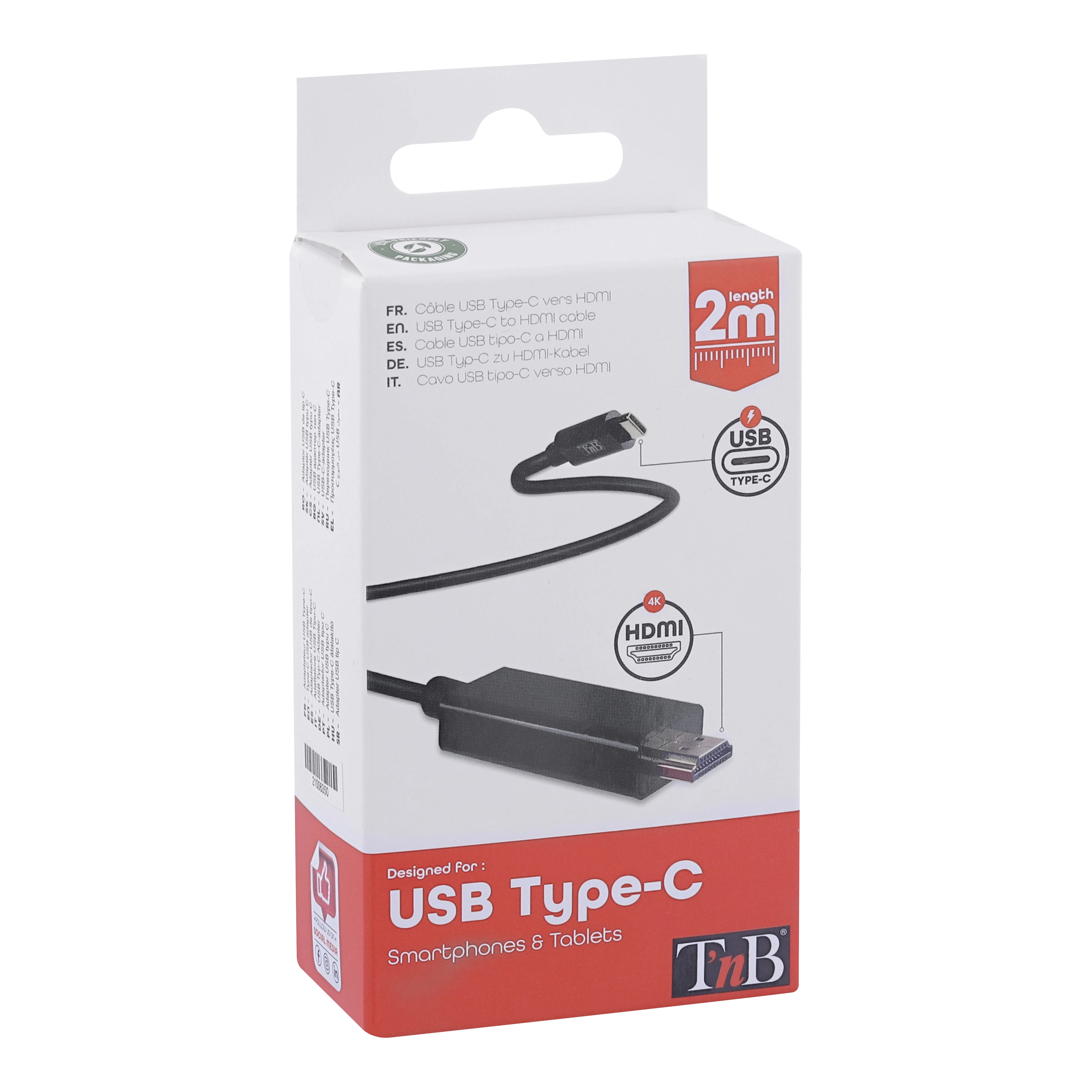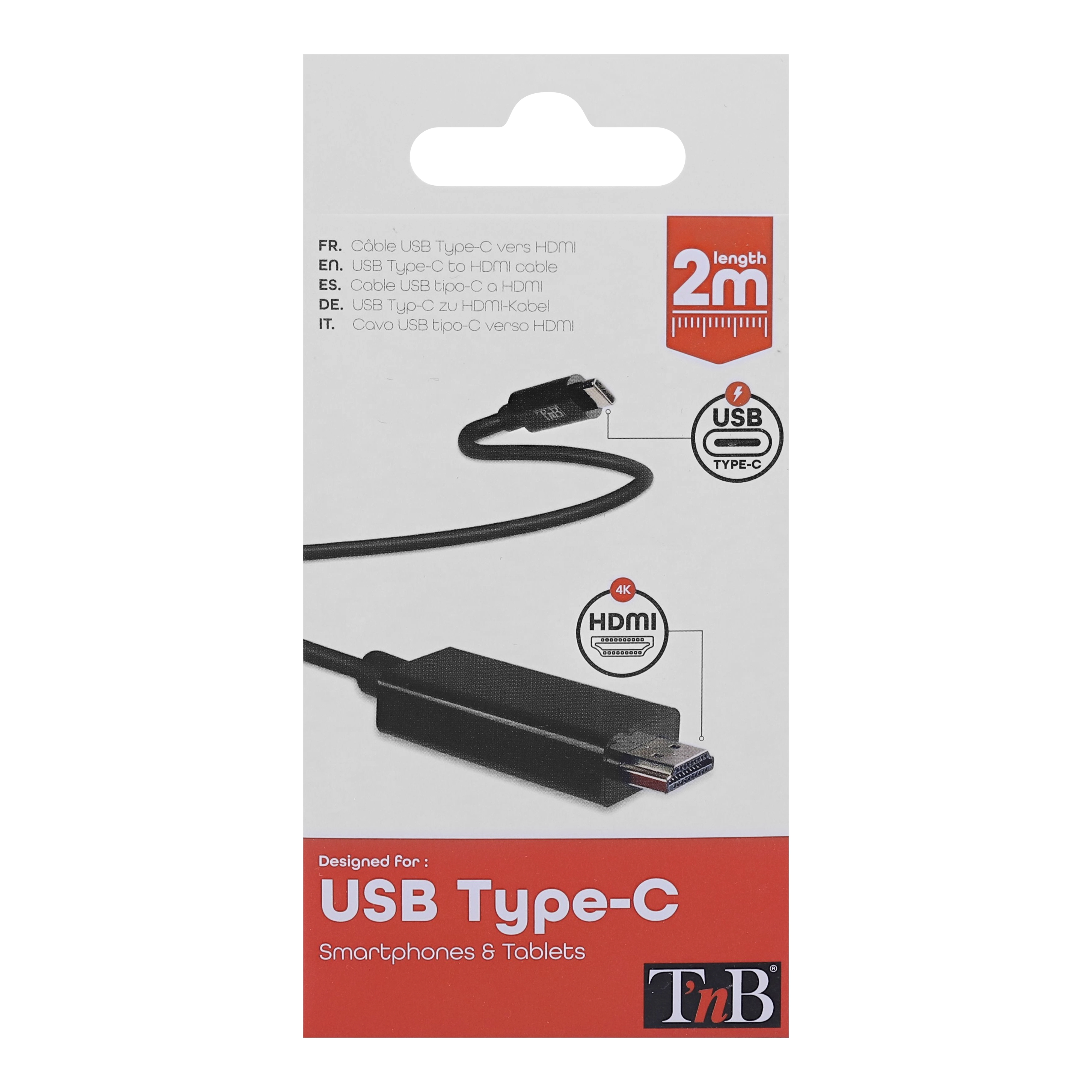 With this HDMI to USB-C cable, connect your smartphone or tablet directly to your TV. You can stream your video content easily and in UHD/HD (4K compatible). Compatible with Youtube, Netflix. . . . Length 2 meters. Works with any smartphone or tablet equipped with a USB-C port