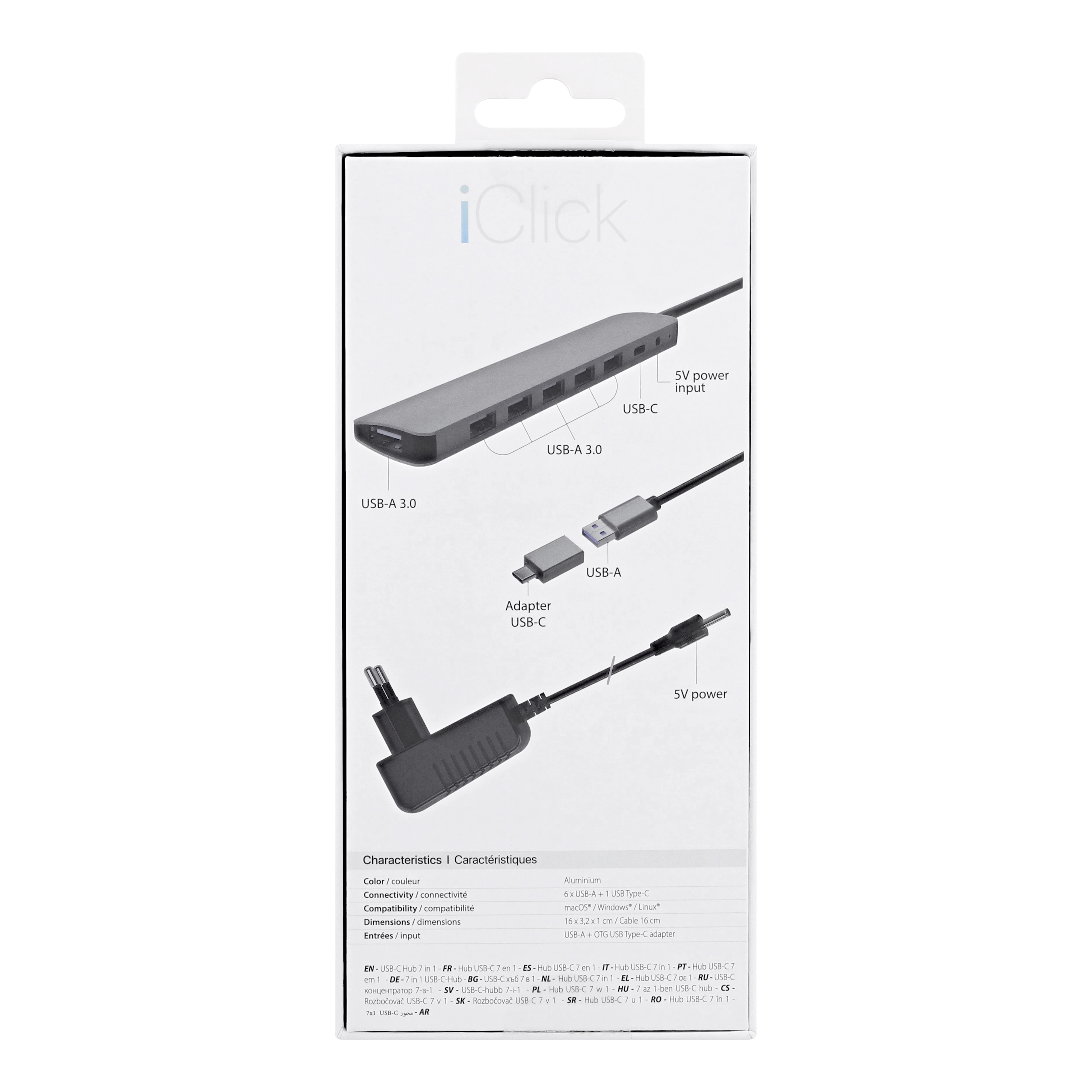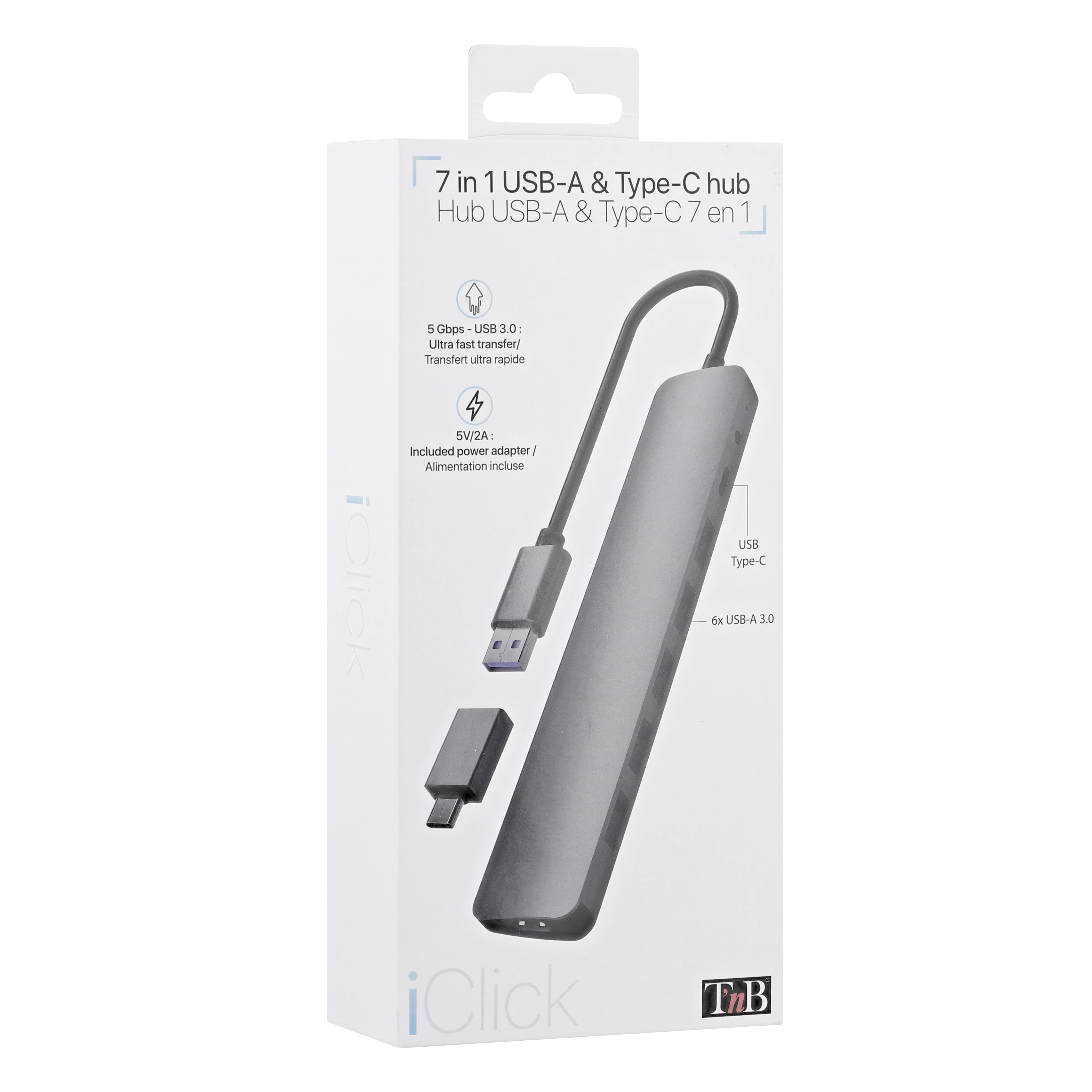 Connect 7 USB-A accessories simultaneously with this ultra-fast powered hub. Strong, slim and elegant thanks to its aluminum finish.