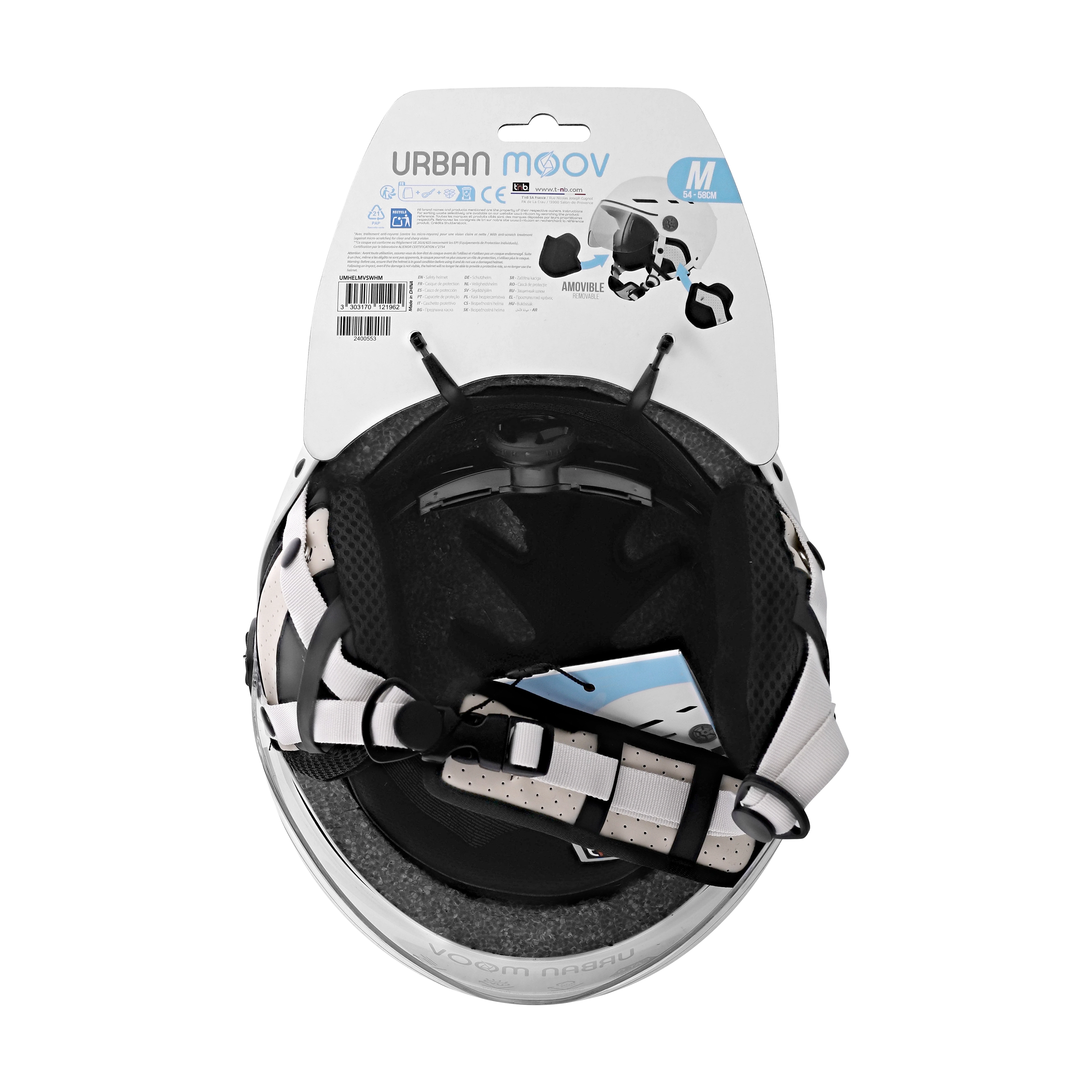 No longer be afraid of falls with the Urban Moov protective helmet. On a scooter, bike, or hoverboard, this helmet will protect you from knocks and bumps. Its transparent visor is treated with anti-scratch, anti-fog and anti-UV and guarantees optimal visibility. It is appreciated against wind, rain, dust, insects when you pick up speed. Fully detachable earmuffs protect you from the cold during the winter as well as the wind. The 8 air intakes provide you with better ventilation. Its adjustment system at the back and its adjustable strap allow you to adjust it perfectly for absolute support and maximum protection. This helmet is tested and certified and complies with CE standard: EN 1078; 2012 + A1: 2012 safety regulations and standards.