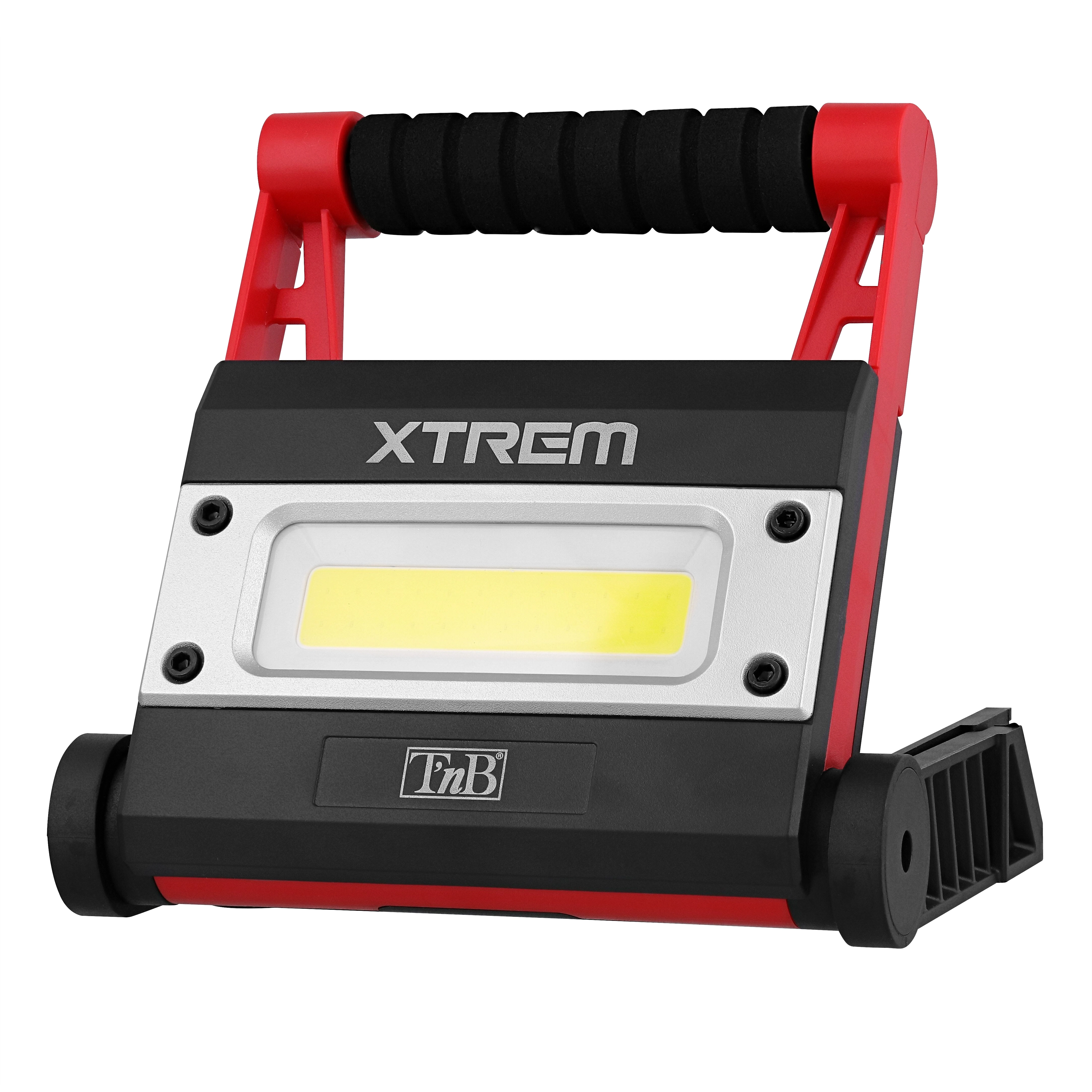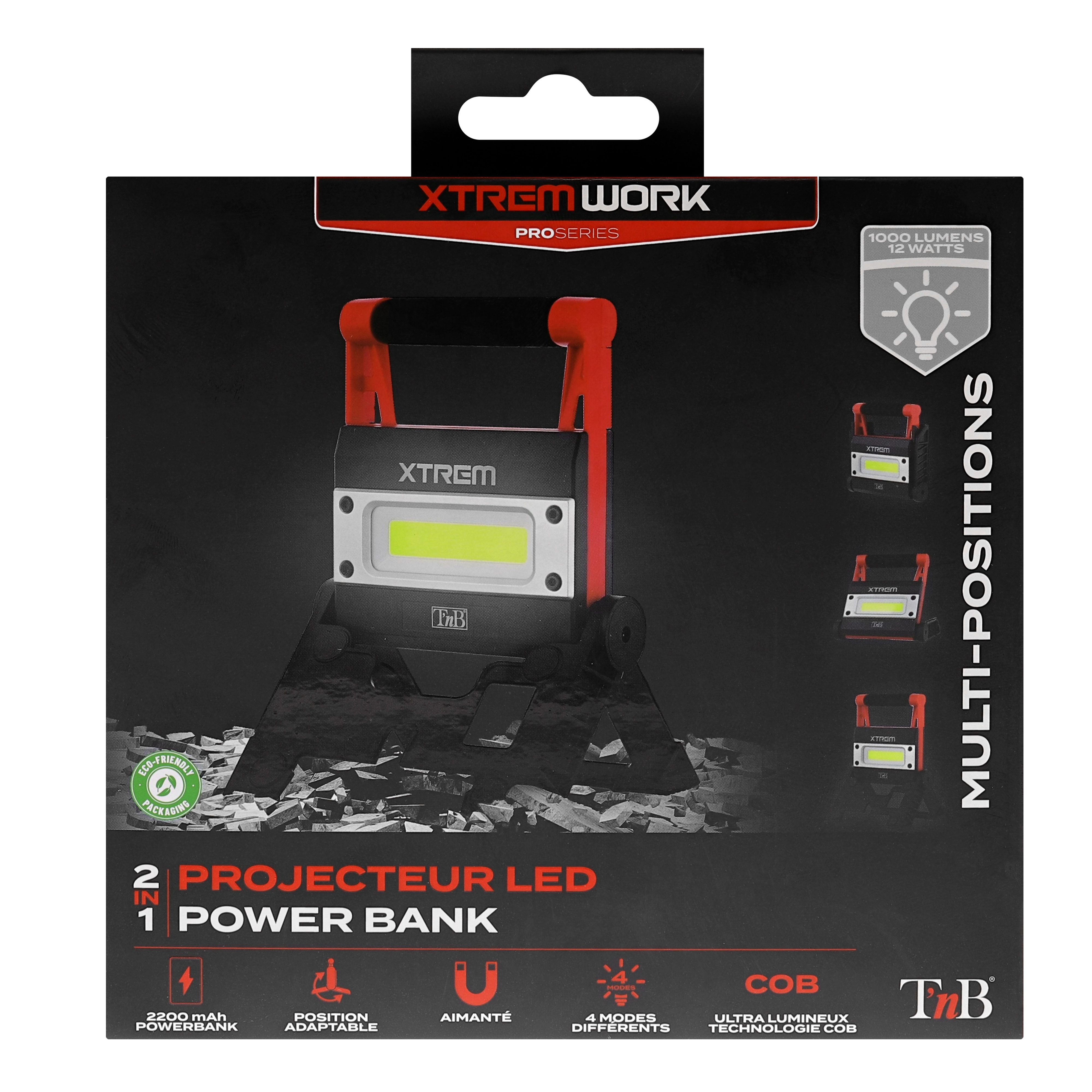 This outdoor lamp with charging station function will accompany you everywhere, in the most extreme situations. It has 4 different lighting modes that can meet all uses: powerful, medium, SOS, strobe. Its COB LED will also allow you to obtain a very bright beam of light and will ensure ideal lighting in many situations. Power 12W - 1000 Lumens. Use your lamp serenely in all weather thanks to its IPX5 standard offering you waterproofness and dustproofing. Take advantage of the many hanging methods at your disposal: Mobile feet / adjustable base / hanging handles / magnetic base In addition, it is equipped with a charging station function to recharge your mobile devices using the USB port. 2200mAh battery Autonomy: high intensity 2.5h / low intensity 5h / SOS 20.5h / flash 20h Xtremwork black finish
