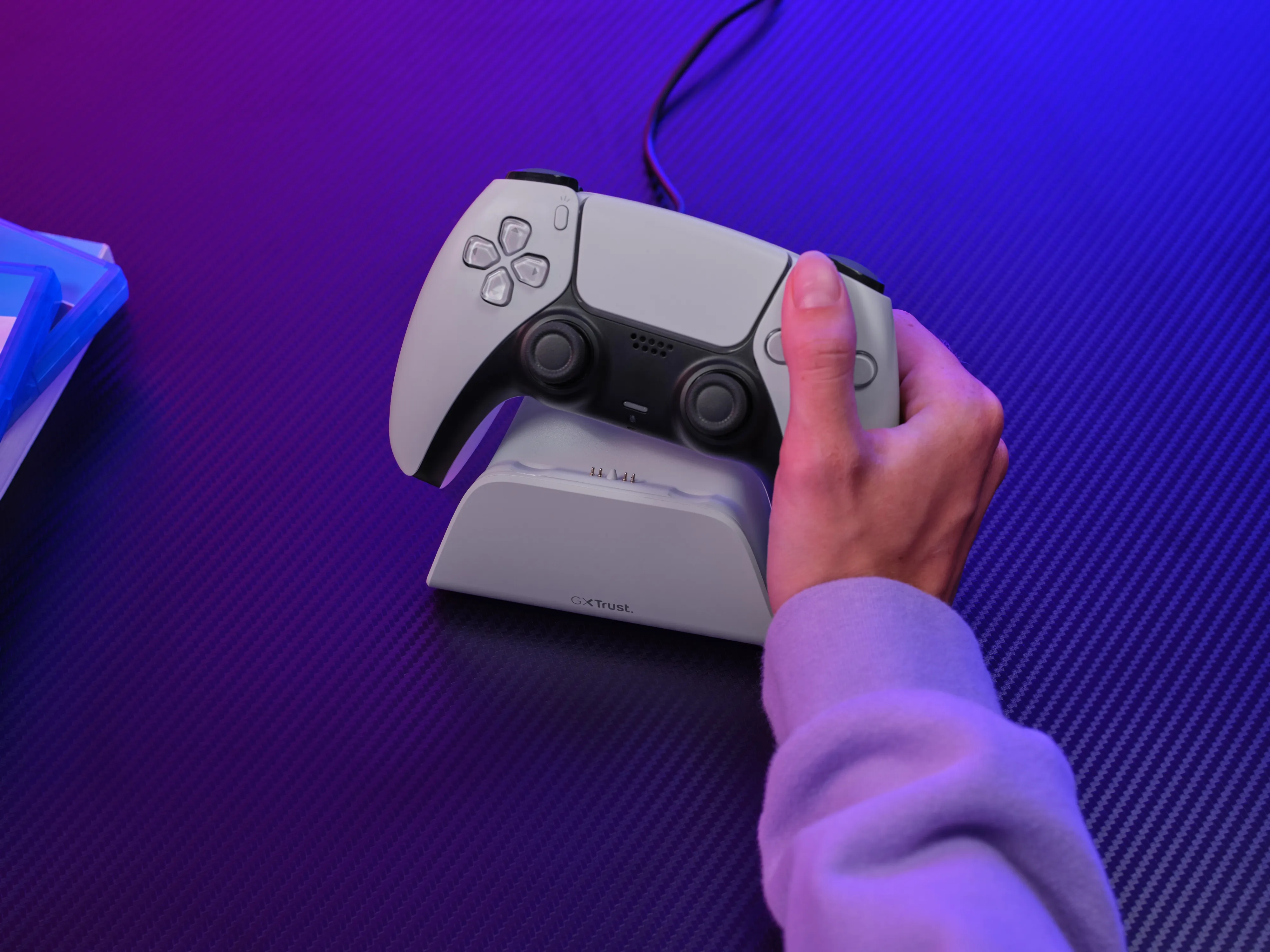 Minder gedoe, meer doen. Met de antislip-onderkant blijft de standaard perfect op zijn plek. Er is zelfs een USB-C-C-oplaadkabel inbegrepen om hem makkelijk te verbinden met je PS5 of stopcontact. Easy!