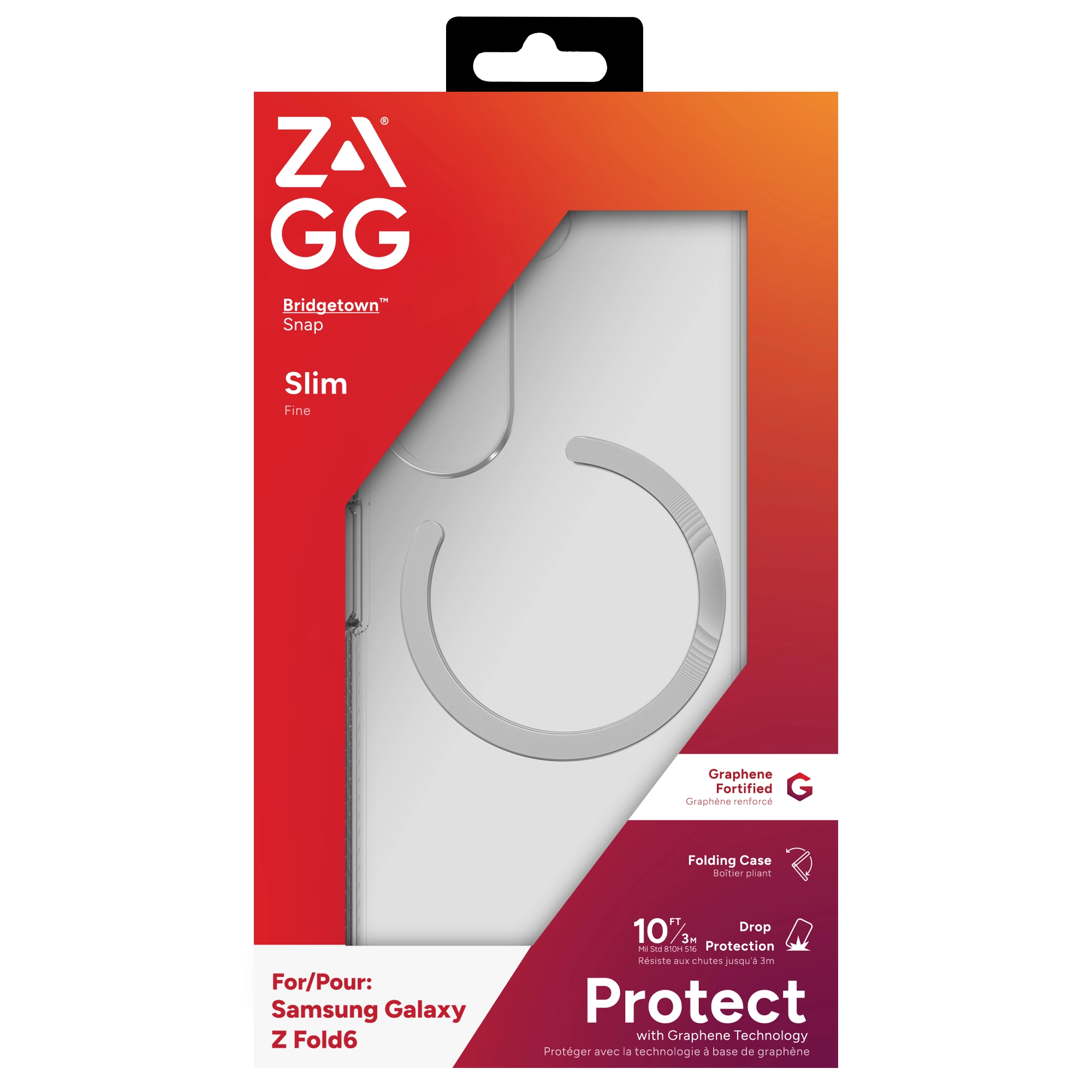 ZAGG Bridgetown Snap. Type etui: Hoes, Merkcompatibiliteit: Samsung, Compatibiliteit: Galaxy Z Fold6, Maximale schermgrootte: 19, 3 cm (7.6"), Oppervlakte kleur: Monochromatisch, Kleur van het product: Transparant